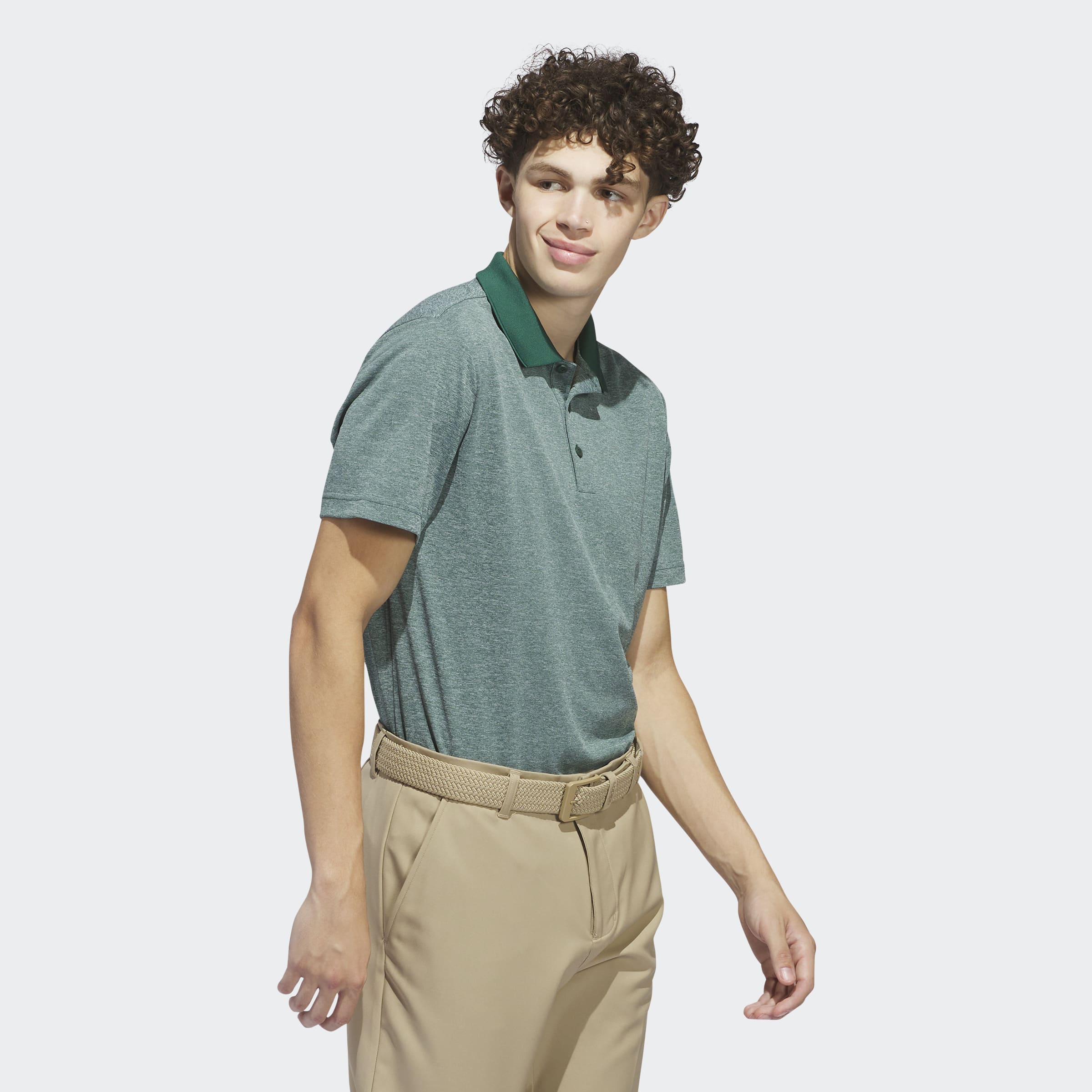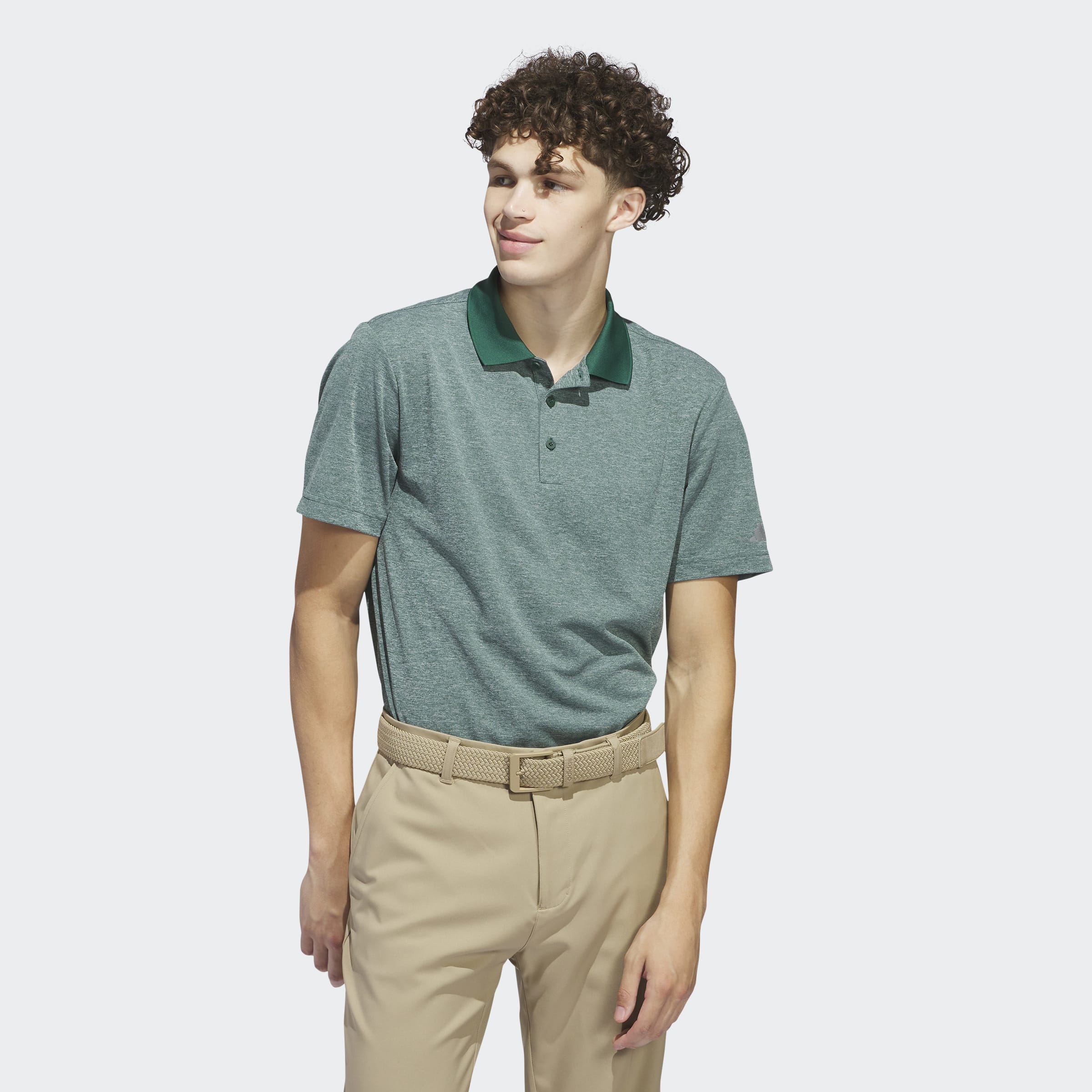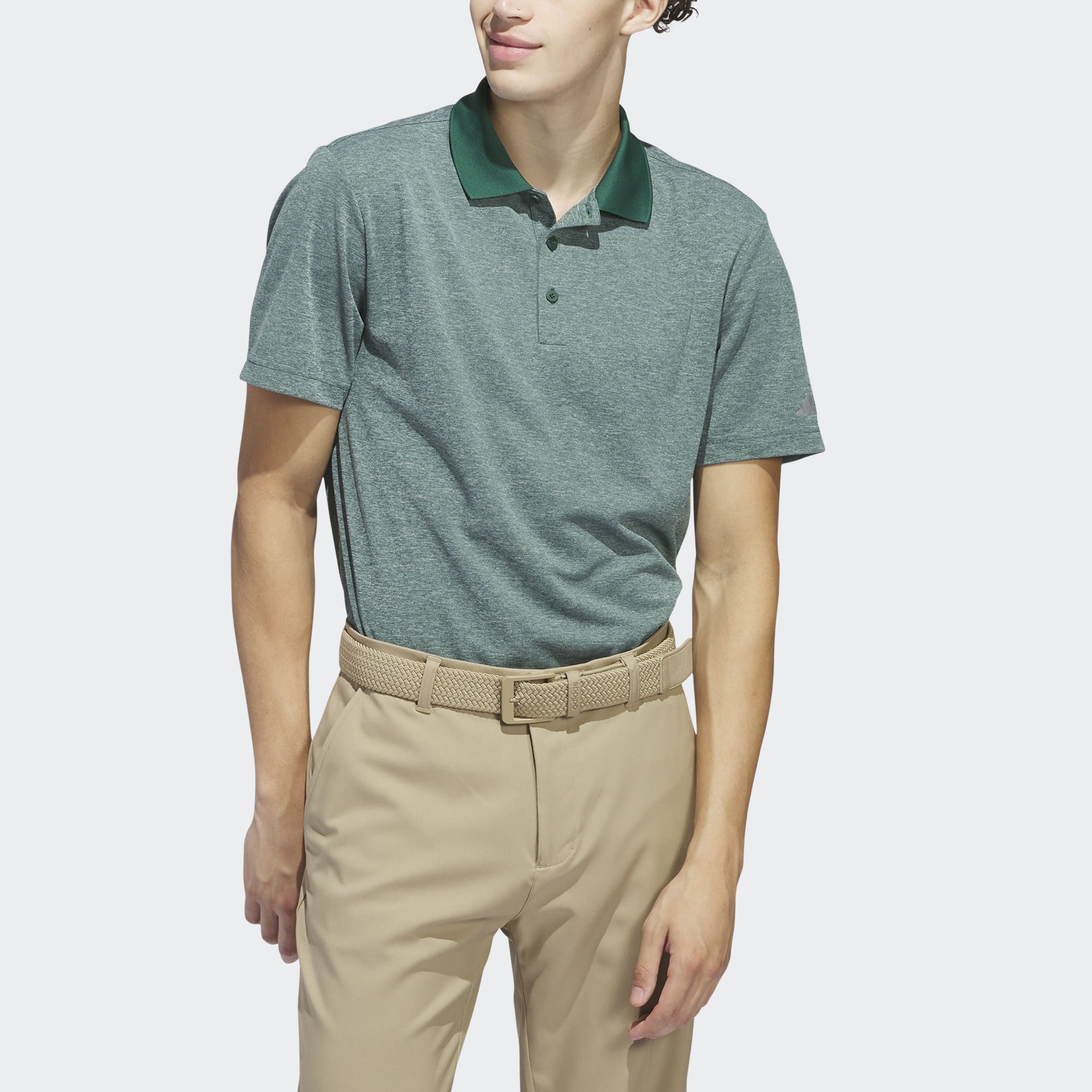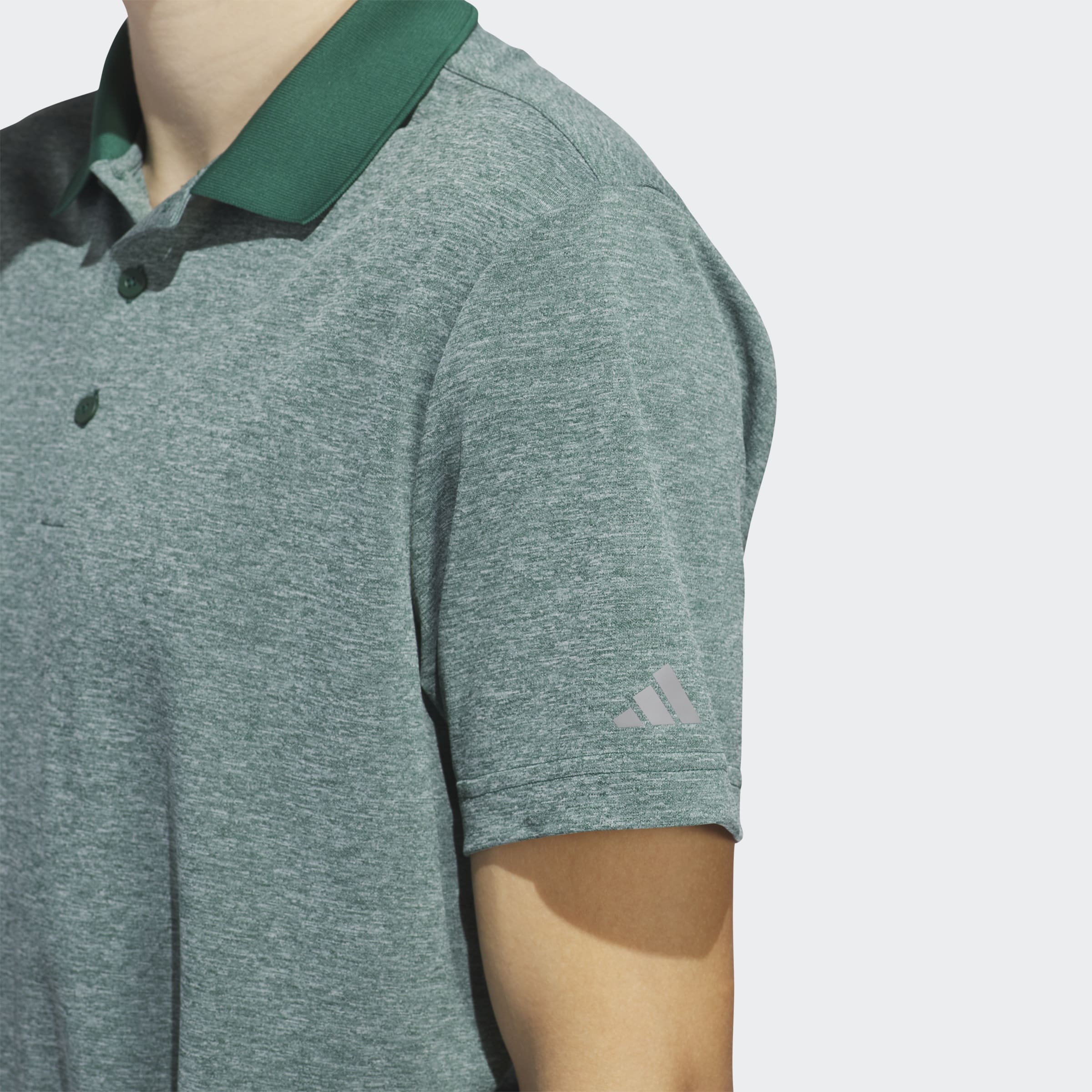 Elevate your style and your game with this adidas golf polo shirt. Soft, heathered jersey gives it a lightweight feel that lets you twist and flex through every swing with full focus.