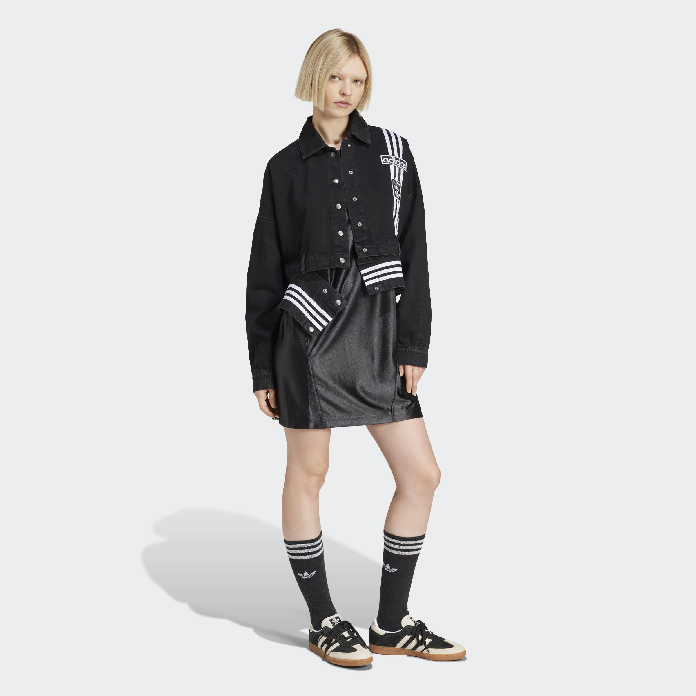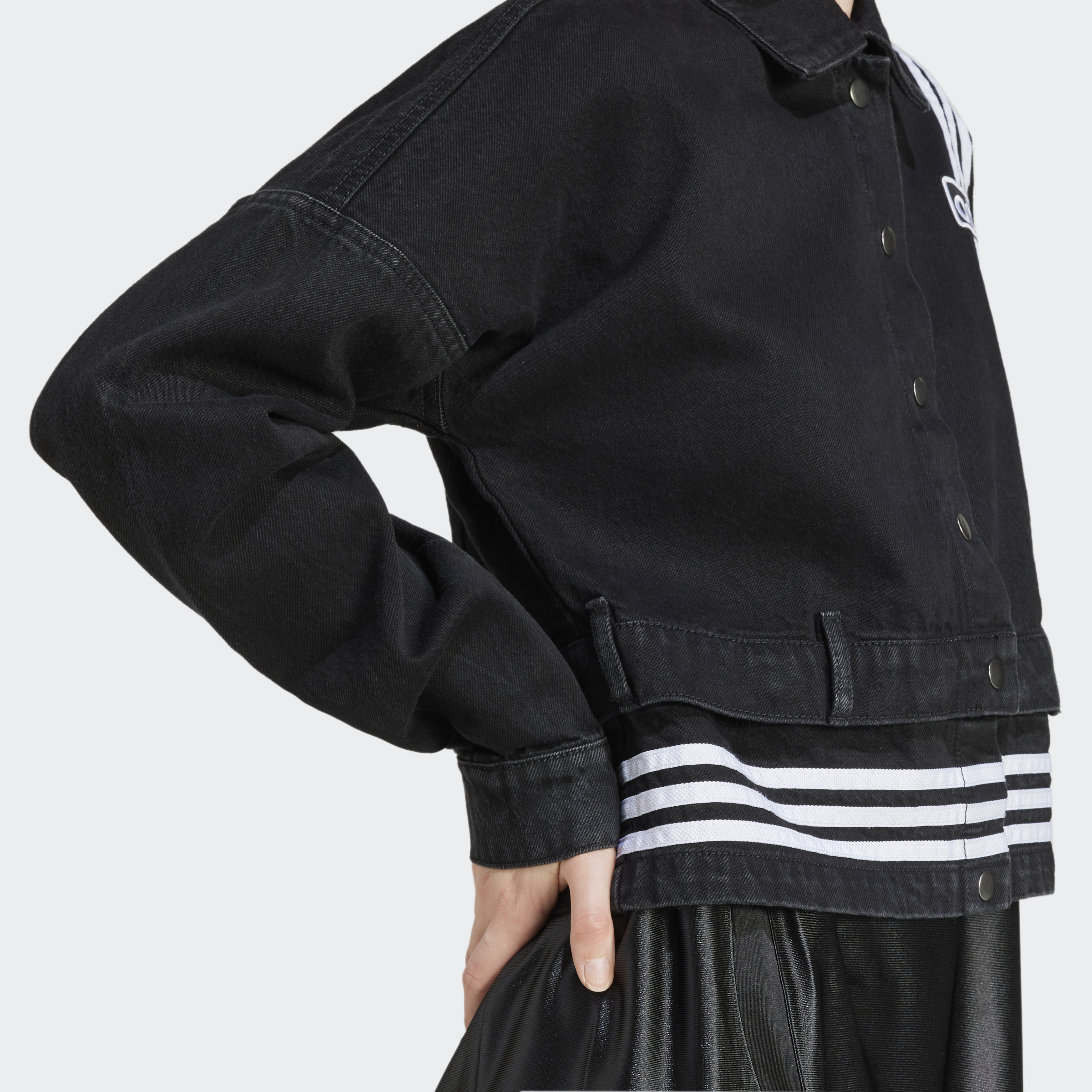 The '90s are calling, and this unique adidas track top is the answer. The denim build offers a classic jacket vibe, while the loose fit keeps it laid-back with plenty of room to relax. Perfect for layering, this jacket has a distinct two-in-one design with a detachable lower hem, transforming it from full-length to cropped in a snap. Wear it as one like a standard denim jacket, or detach the hem and layer it over your favourite tee or top for a look with a fun twist.