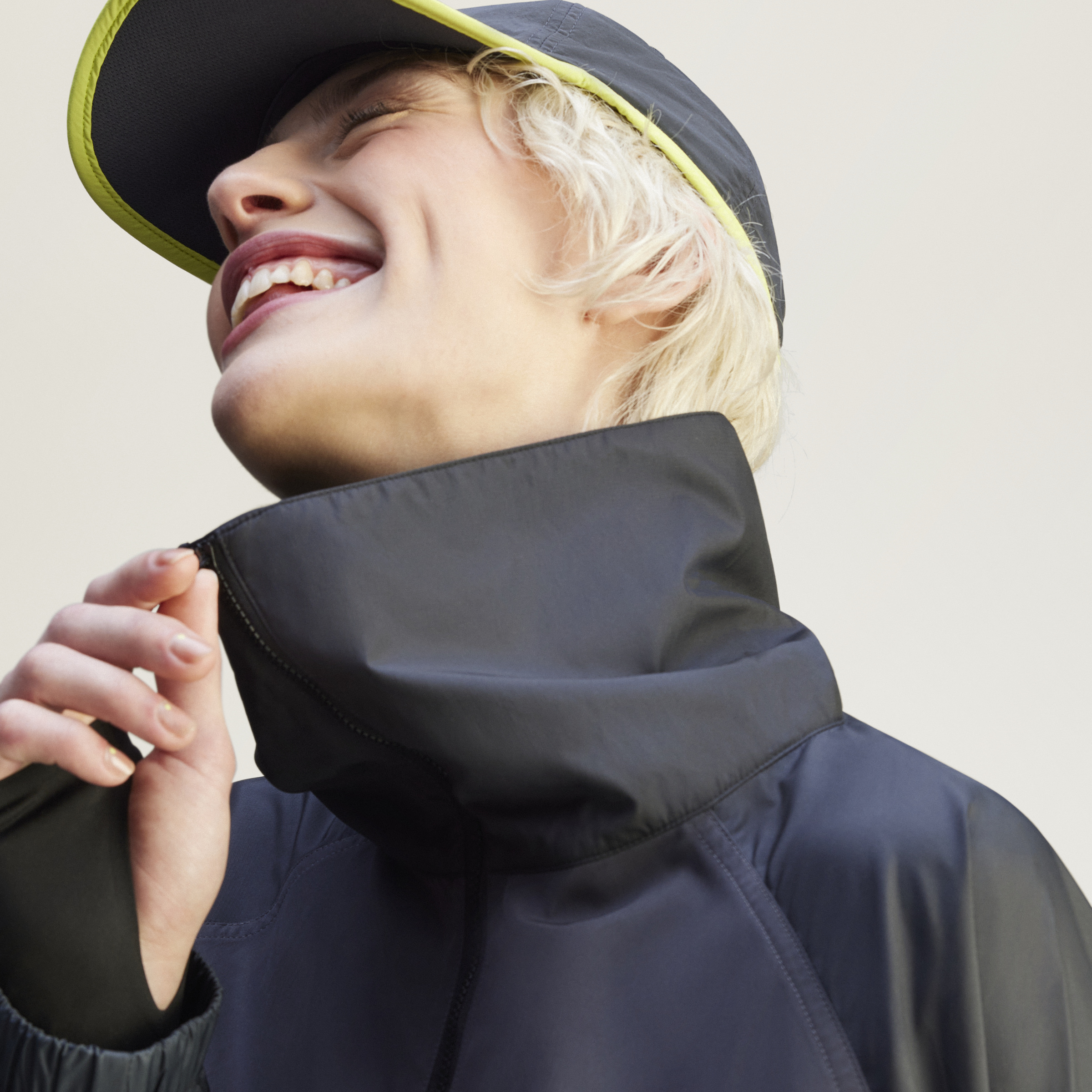 • Half zip with stand-up collar