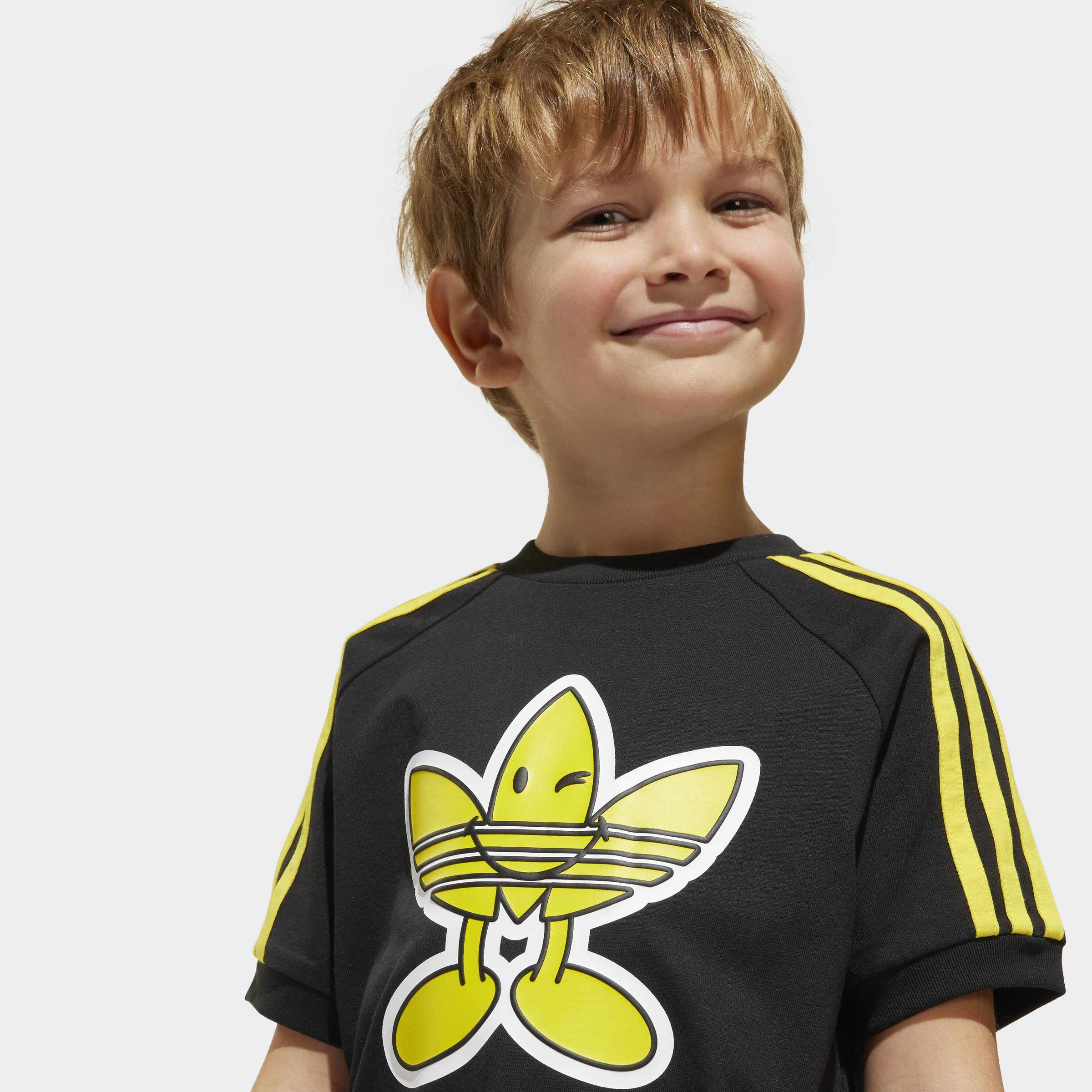 This kids' tee from adidas celebrates the legendary Trefoil in a playful way. It's all about the good vibes with a Smiley World graphic front and centre. Made from soft single jersey fabric, this t-shirt keeps them comfortable whether they're playing or just hanging out.