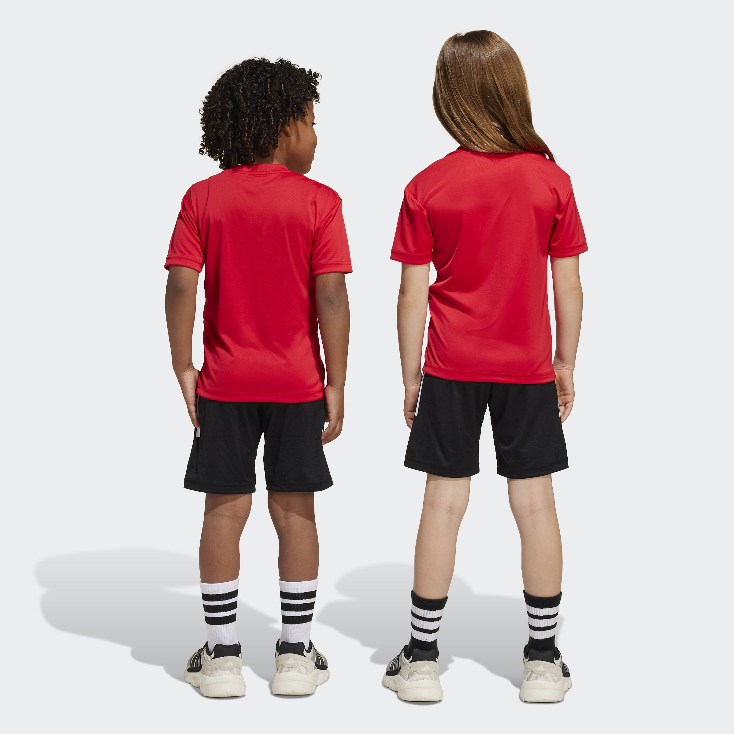 Equipped with gear to rival a superhero's, your little one is ready to join the action. This kids' adidas tee-and-shorts set is inspired by Marvel's Iron Man, with a colourful graphic of the iconic suit of armour on the front. The matching shorts feature a subtle allover print of Iron Man's helmet. The soft fabric and comfortable fit of this set let kids play and explore without distraction. CLIMACOOL wicks and disperses sweat for cool, dry and distraction-free performance. CLIMACOOL helps them manage sweat with materials that wick and manage sweat quickly. Its fast-dry fibres give them a fresh-skin feel. This product is made with 100% recycled materials. By reusing materials that have already been created, we help to reduce waste and our reliance on finite resources and reduce the footprint of the products we make.