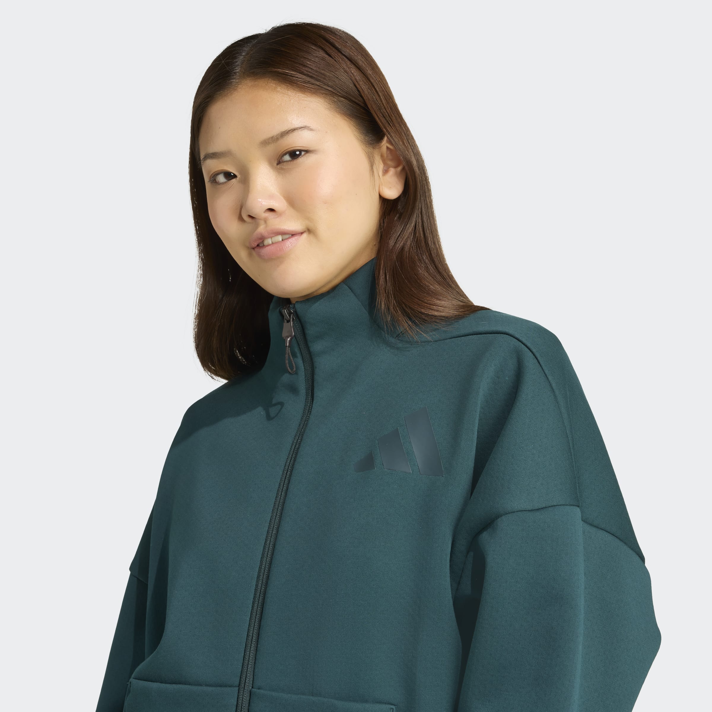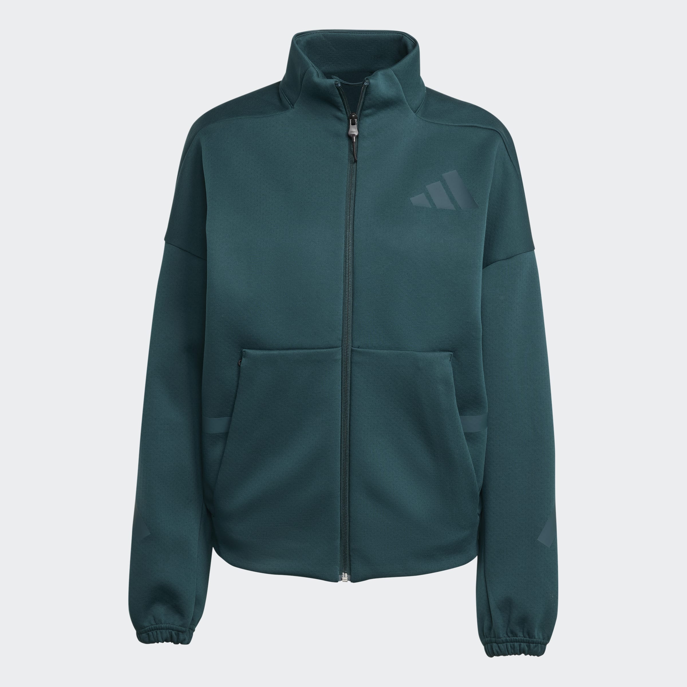 When you're on the move, this adidas track top keeps you comfortable. The doubleknit fabric is soft and smooth, so you're ready for anything. Matte rubber-print lines on the sleeves add a subtle nod to sport that keeps you connected to the collective.