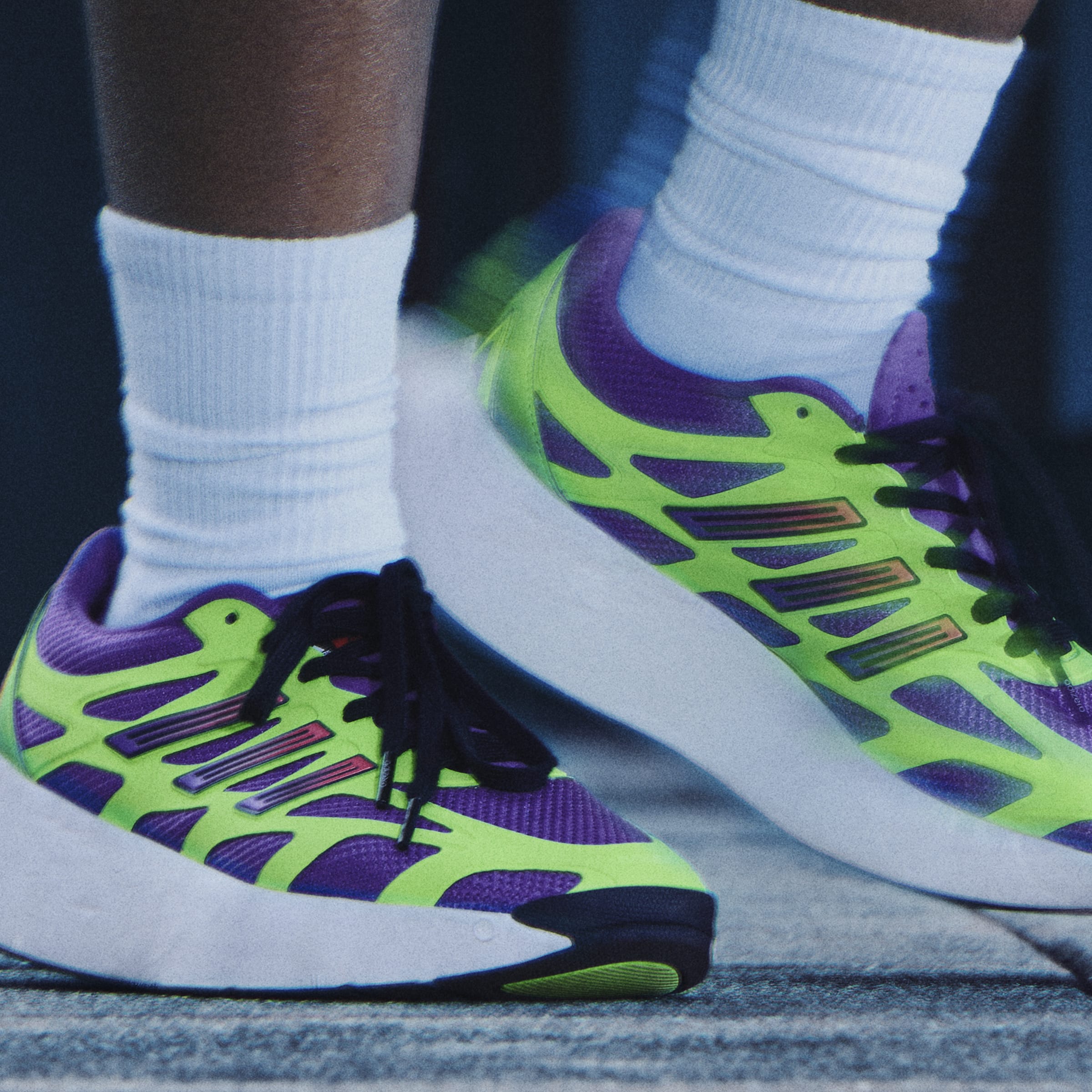 Channel the '00s with the Adizero Aruku Shoes, inspired by a favourite running shoe from the Adizero archives. These lifestyle trainers are designed around the notion of perpetual motion, with a rocker shape and soft Swirlfoam cushioning. Let the retro-inspired silhouette and minimal branding speak for themselves as you chase the horizon in sporty style and comfort. For those always on the move, these shoes become a natural extension of the journey.