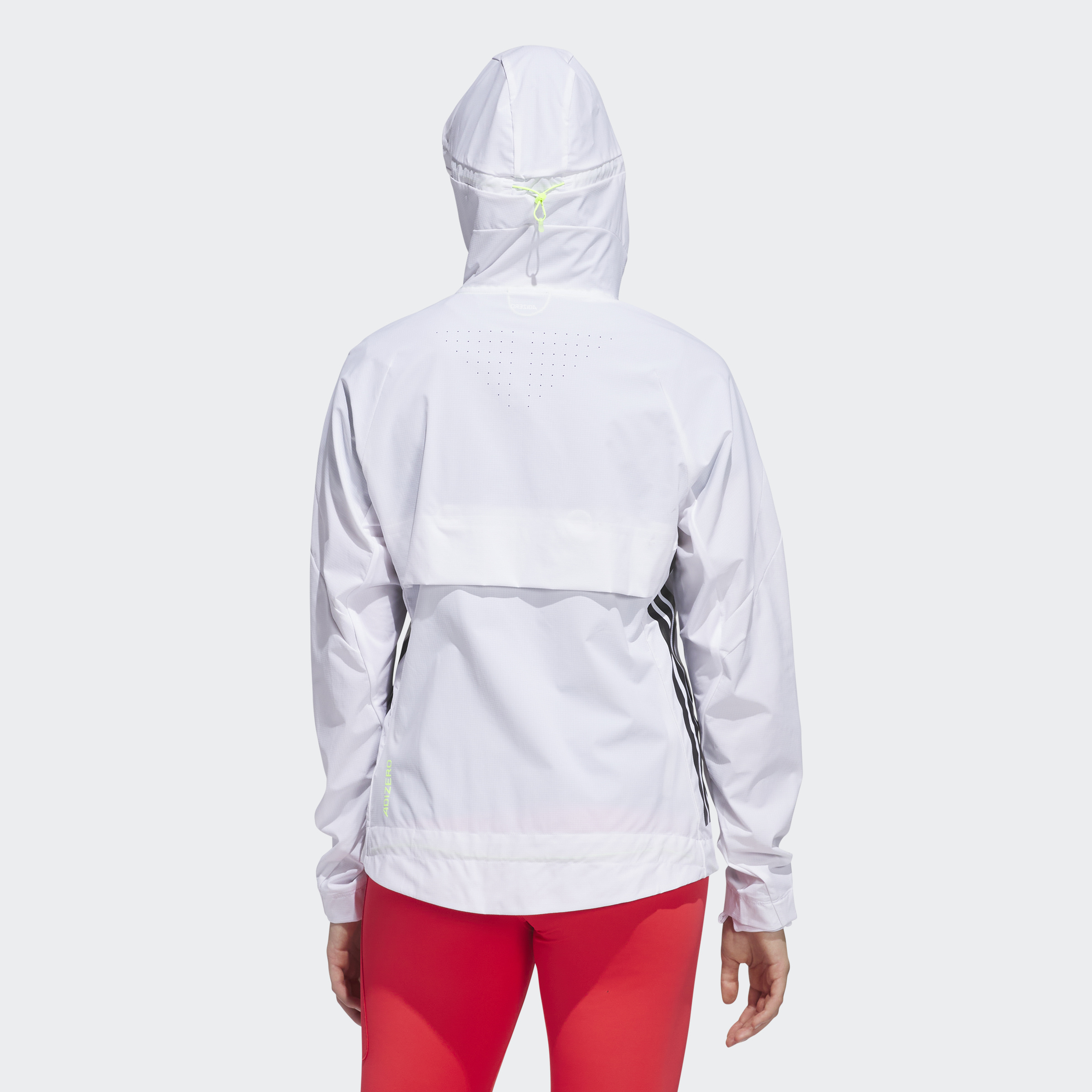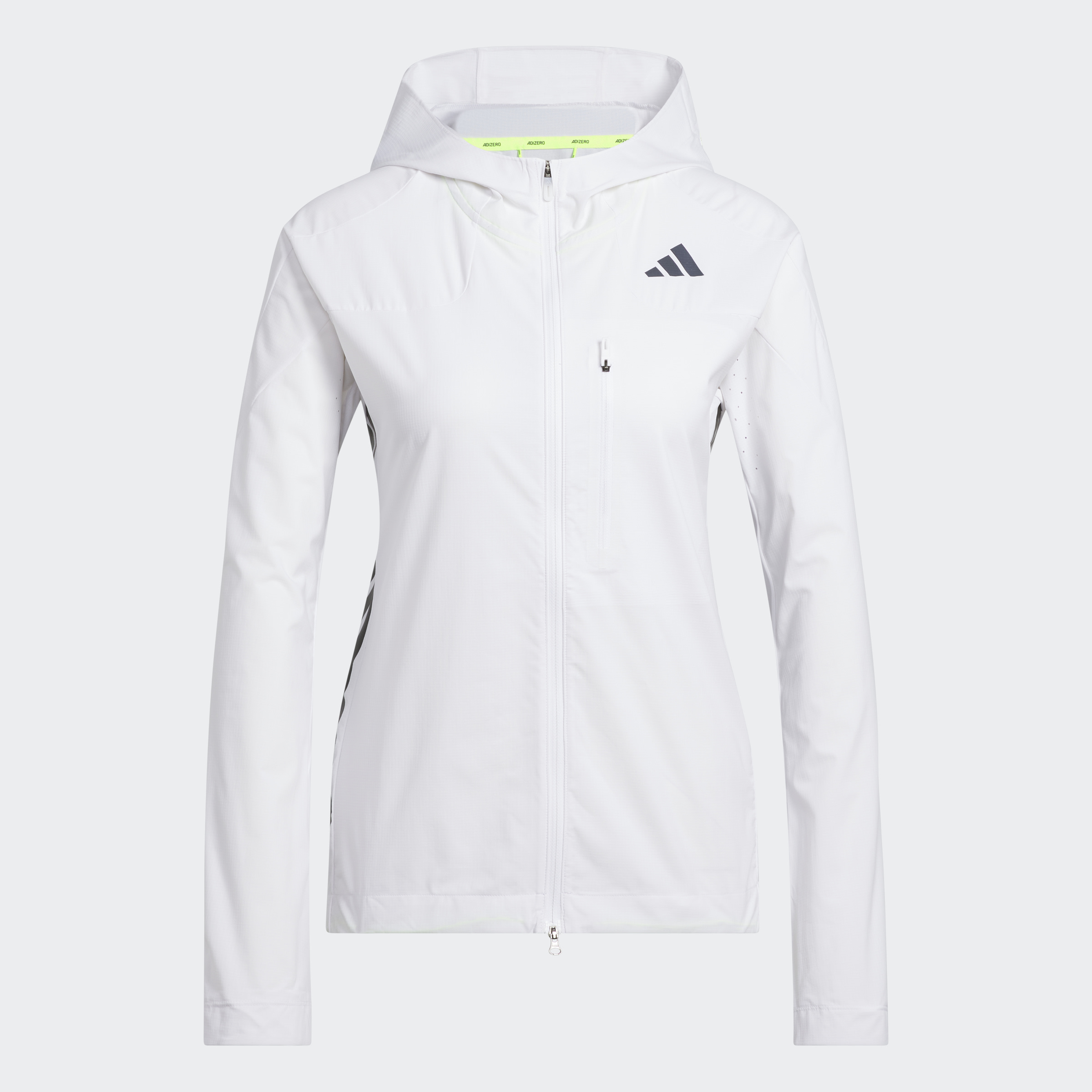 Zip up and keep training in cooler weather. With a slim, aerodynamic fit, built-in vents and wind resistance, this adidas running jacket is ready to help you make breakthroughs in your running. You can customise the fit with adjustable bungees at the hood and hem. This product is made with 100% recycled materials. By reusing materials that have already been created, we help to reduce waste and our reliance on finite resources and reduce the footprint of the products we make.