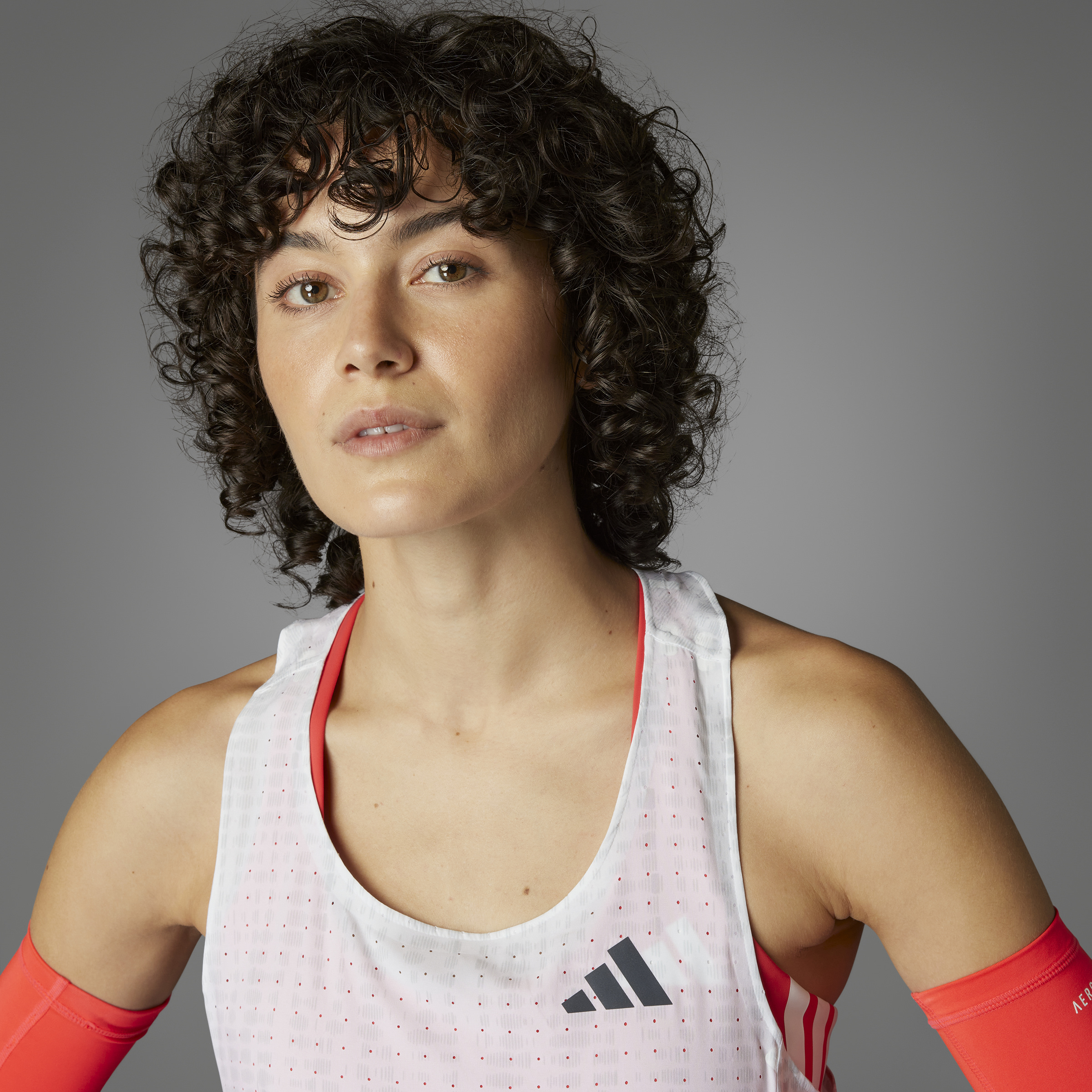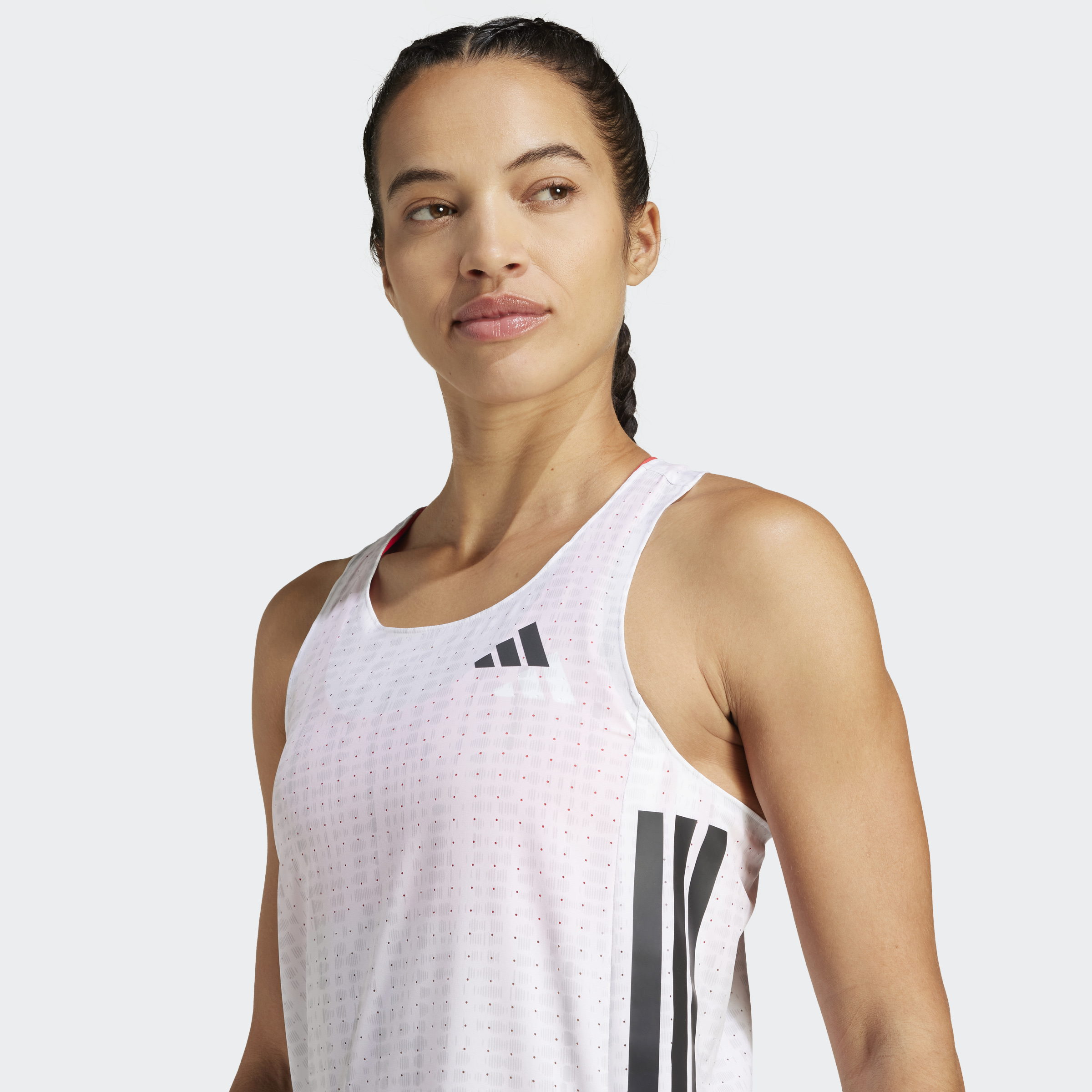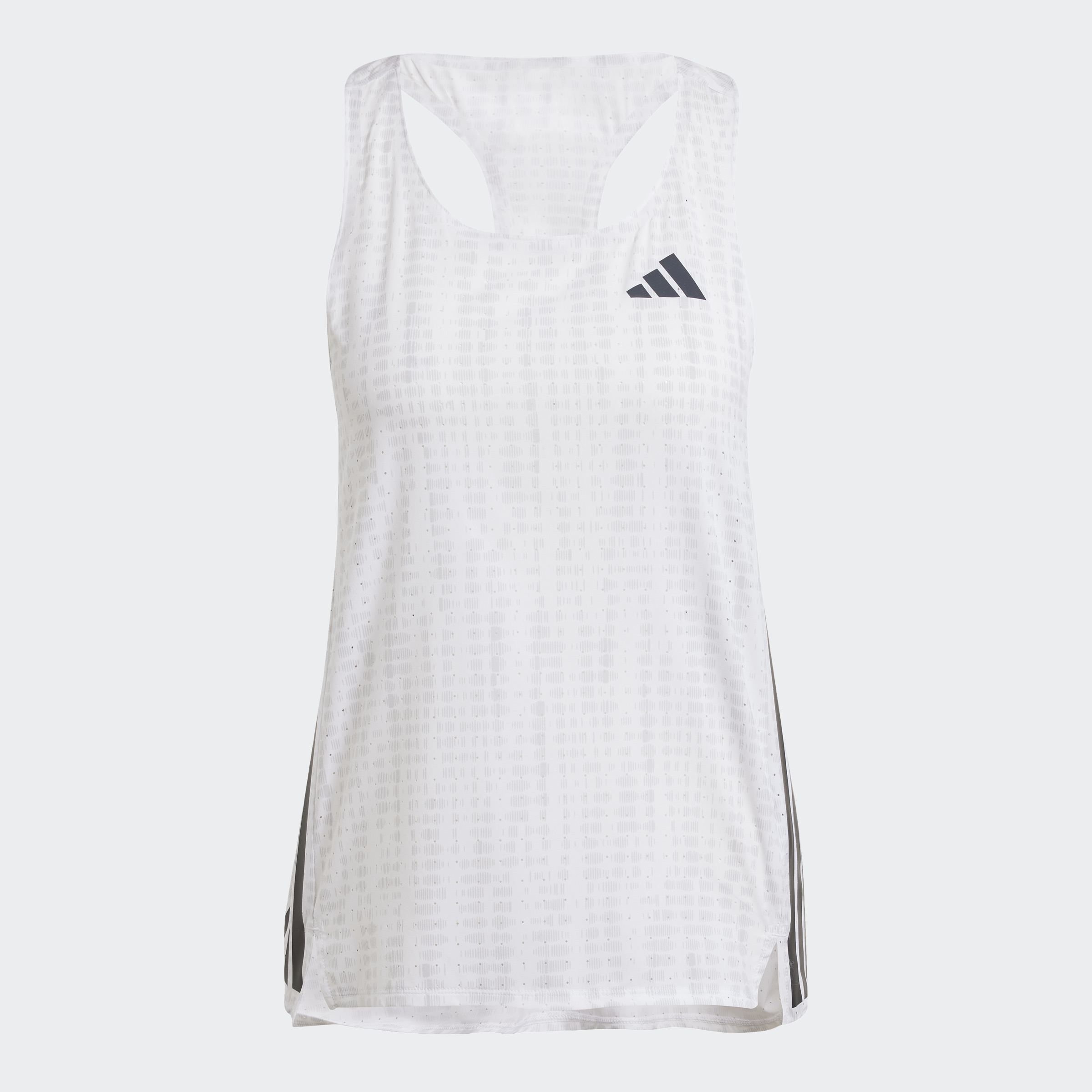 Set your sights on the impossible. Run towards it. Whether setting a PR or completing your first marathon, this ultra-light adidas running singlet offers distraction-free performance to help you achieve your goals. It fits slim for a barely-there feel and has perforations to keep air circulating. The side seams are shifted forward and abrasion points are taped over to reduce chafing and friction. This product is made with at least 70% recycled materials. By reusing materials that have already been created, we help to reduce waste and our reliance on finite resources and reduce the footprint of the products we make.