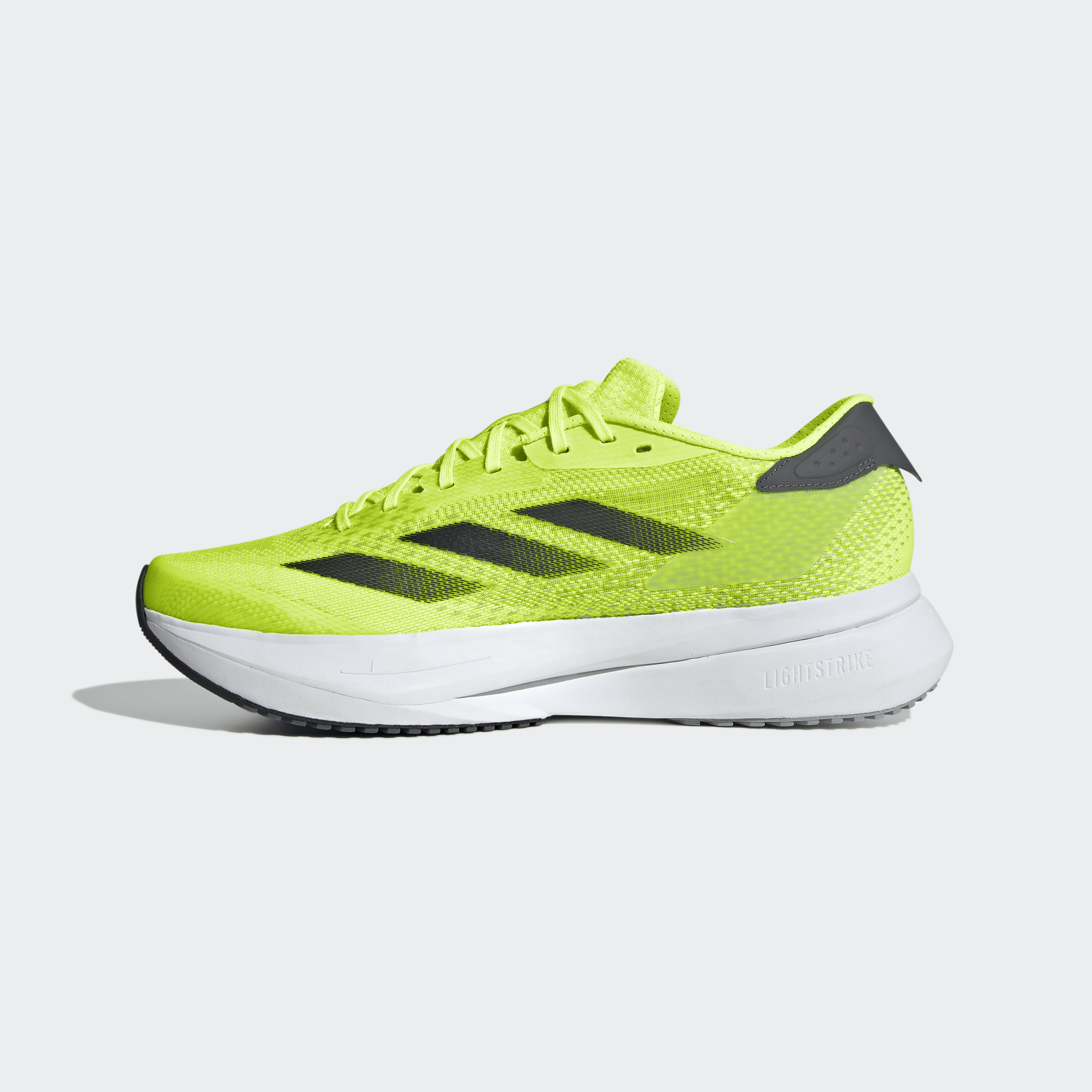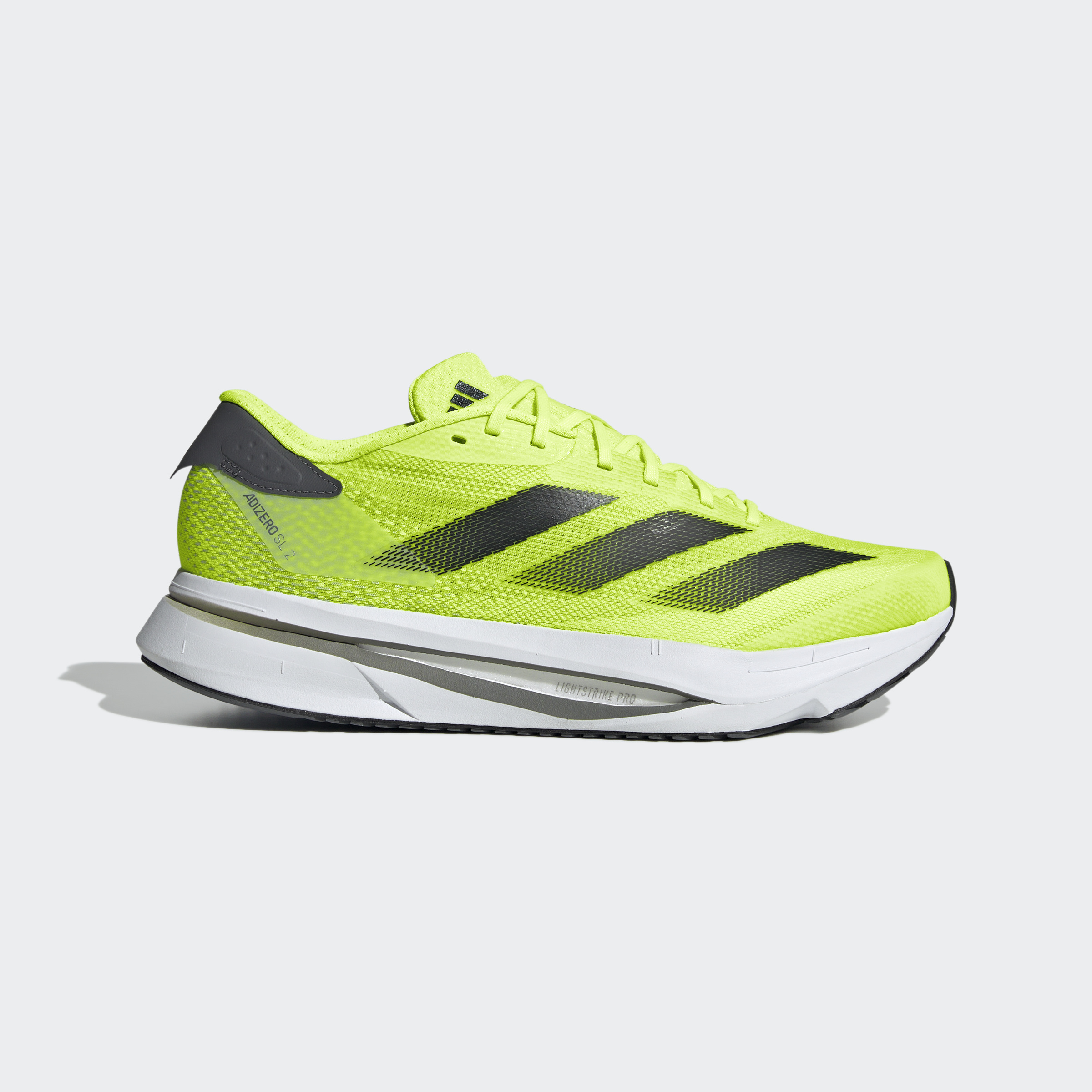 Experience the thrill of breaking personal records in a shoe that's as fast as you are. These adidas Adizero running shoes are equipped with responsive Lightstrike Pro, super-light cushioning that delivers energy return for next-level speed. The engineered mesh upper provides breathability and targeted support where you need it most to keep you flying to the finish. This product features at least 20% recycled materials. By reusing materials that have already been created, we help to reduce waste and our reliance on finite resources and reduce the footprint of the products we make.