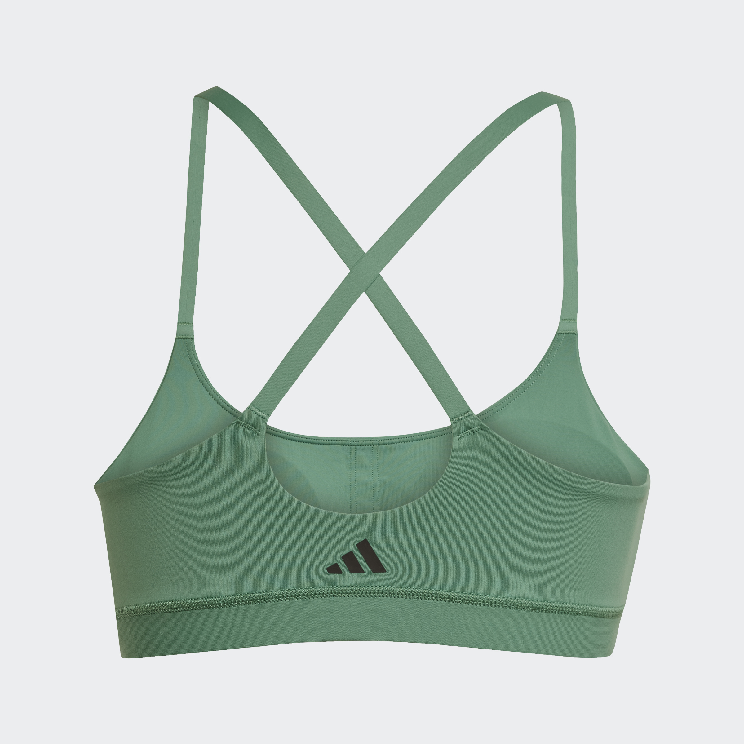 From Sun Salutations to Savasana, feel at ease in this light-support bra from adidas. Adisoft fabric is smooth, soft and supportive. Removable pads with grip dots stay in place as you flow through poses. Inspired by ballet, the strappy design has a feminine look that can be paired with open-back tops or worn alone.