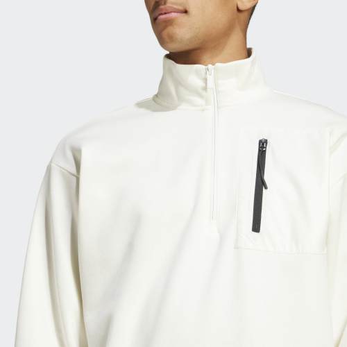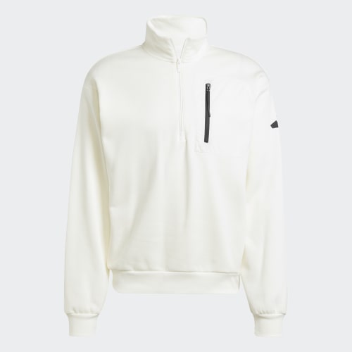 Take on the city in this adidas half-zip fleece sweatshirt. A zip pocket keeps your essentials secure as you navigate the bustling landscape. The soft fleece build and ribbed cuffs offer comfort that lasts all day. By choosing recycled, we are able to reuse materials that have already been created, which helps to reduce waste. Renewable materials choices will help us to remove our reliance on finite resources. Our products made with a blend of recycled and renewable materials feature at least 70% total of these materials.