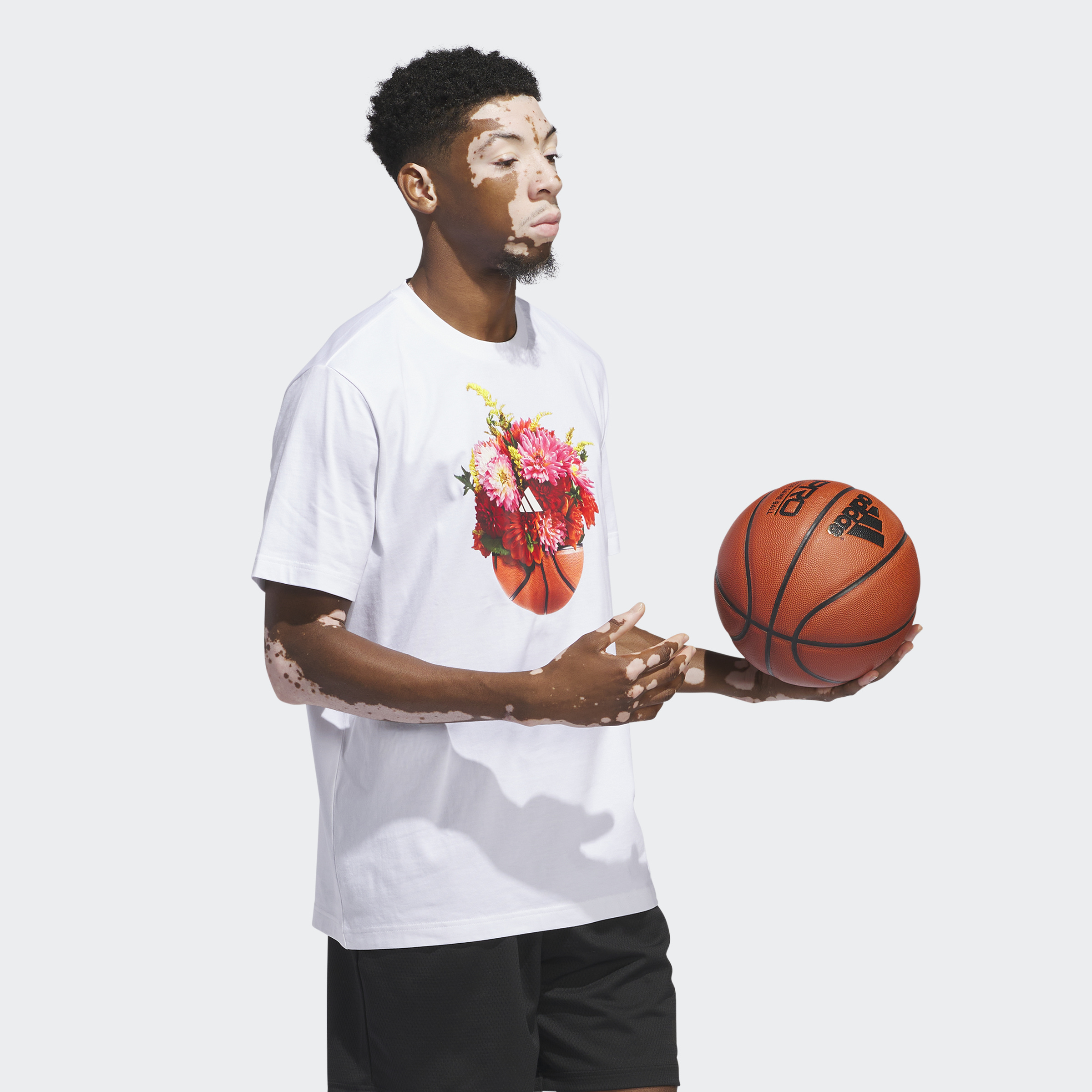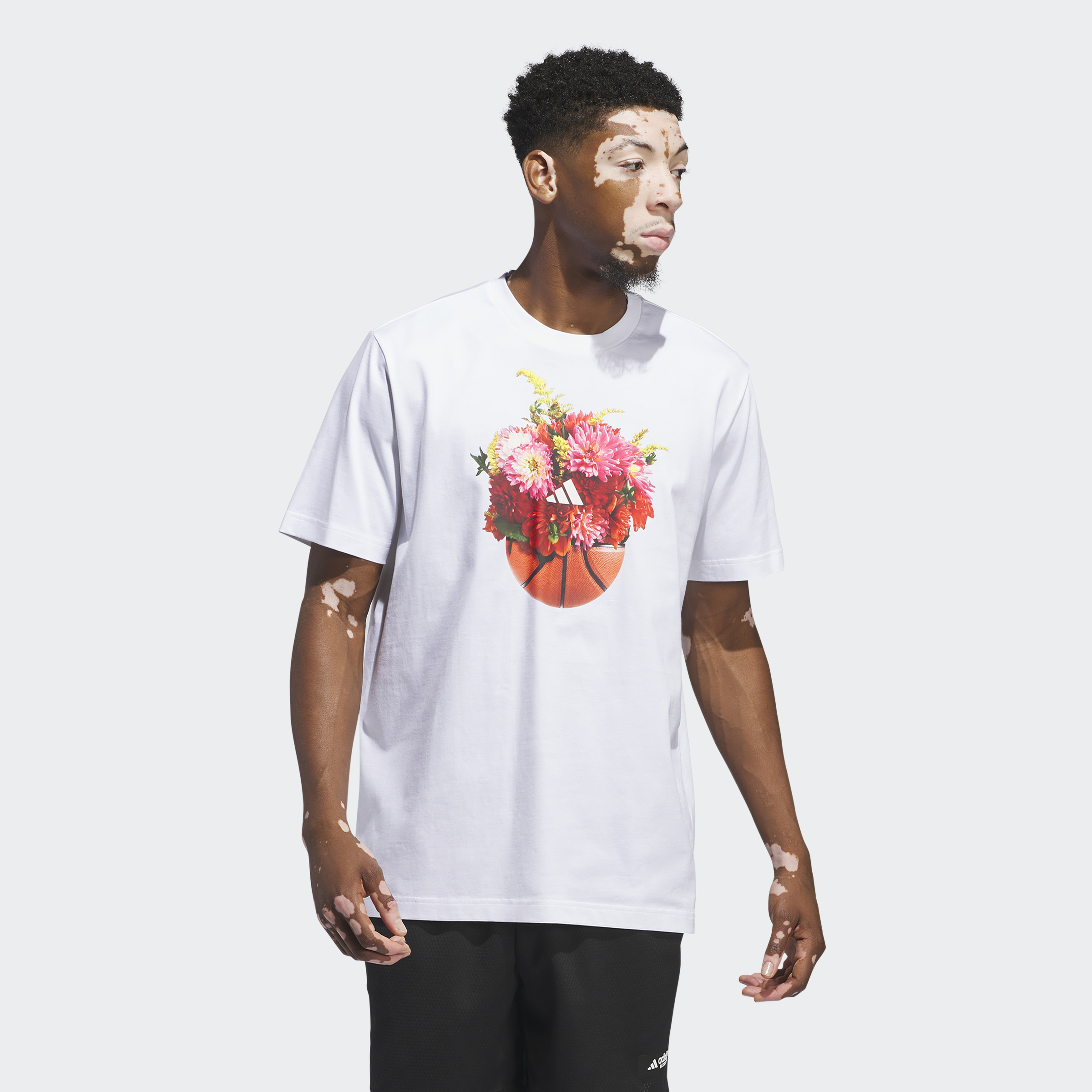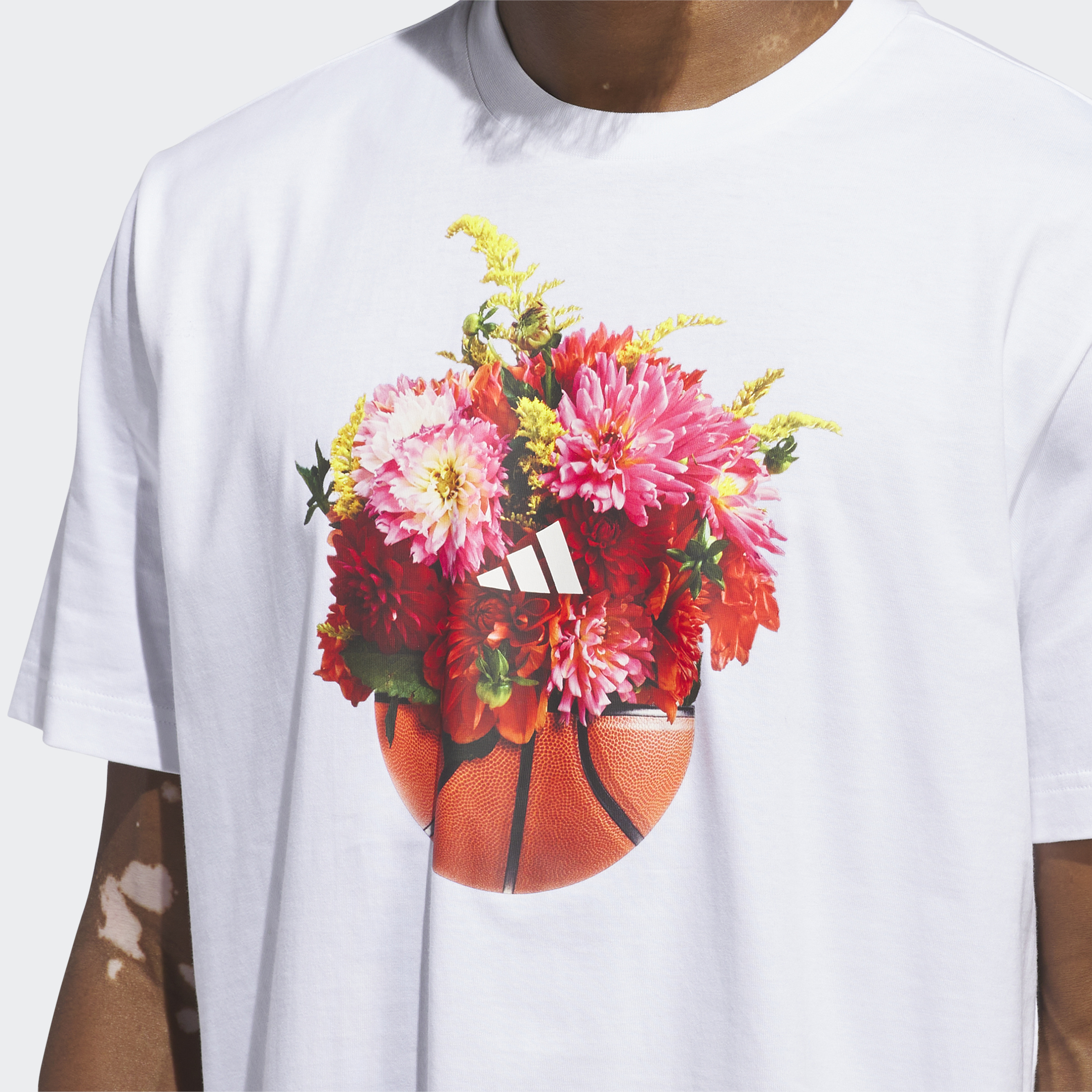 Rock the hardwood in retro style. This floral hoops graphic tee lets you represent your love of basketball with a throwback design. Comfortable cotton and a relaxed fit mean you'll stay comfortable whether you're shooting around or cheering on your team from the sidelines. The cotton in this product has been sourced through Better Cotton. Better Cotton is sourced via a chain of custody model called mass balance. This means that Better Cotton is not physically traceable to end products. Find out more here: https://bettercotton.org/who-we-are/our-logo/