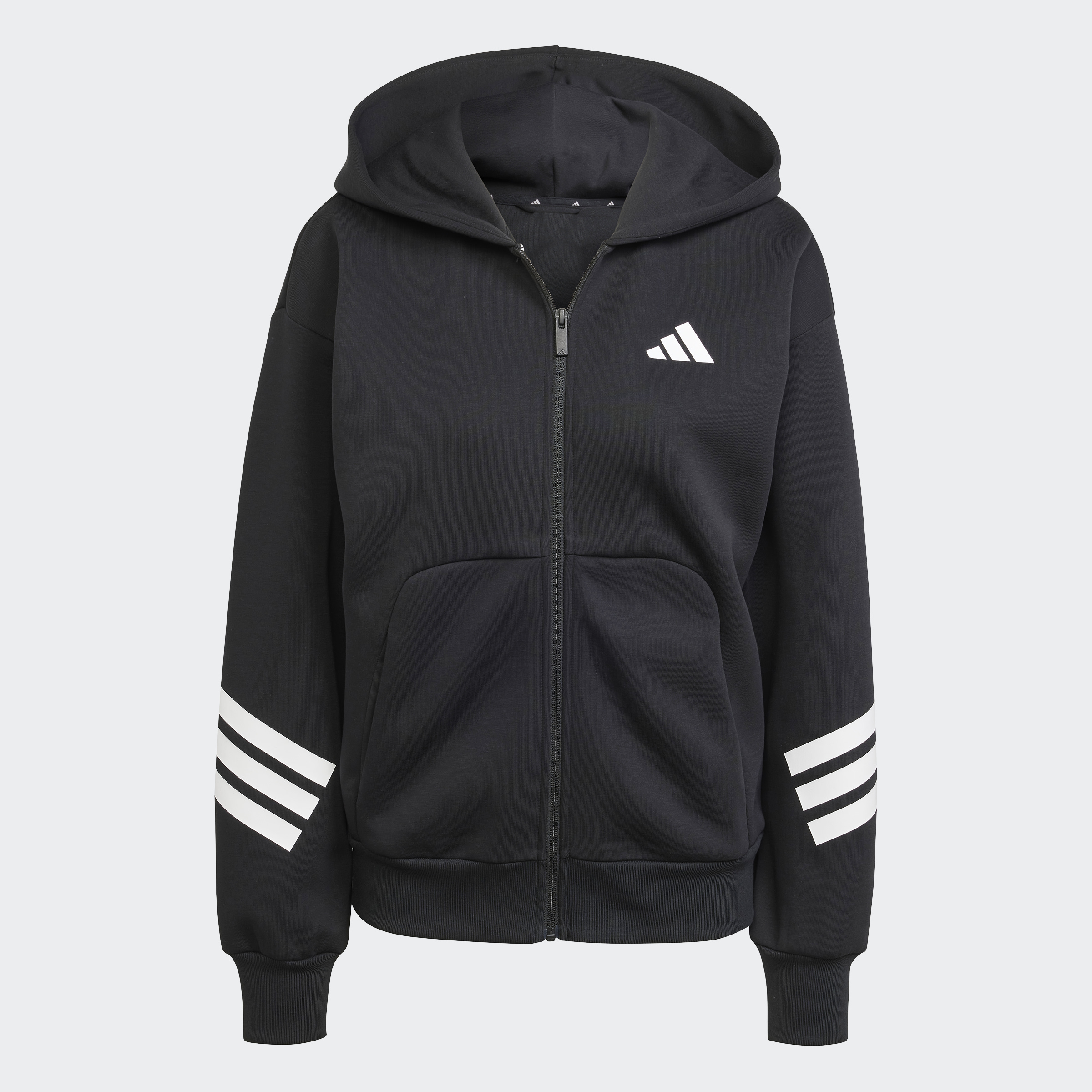 This adidas hoodie allows you to wrap yourself in comfort. The cotton-blend fabric feels soft against your skin, and the relaxed shape lets you move with ease. Ribbed details at the cuffs and kangaroo pockets complete the look. Zip it up and let the modern 3-Stripes branding on the arms show your connection to sport. By choosing recycled, we are able to reuse materials that have already been created, which helps to reduce waste. Renewable materials choices will help us to remove our reliance on finite resources. Our products made with a blend of recycled and renewable materials feature at least 70% total of these materials.
