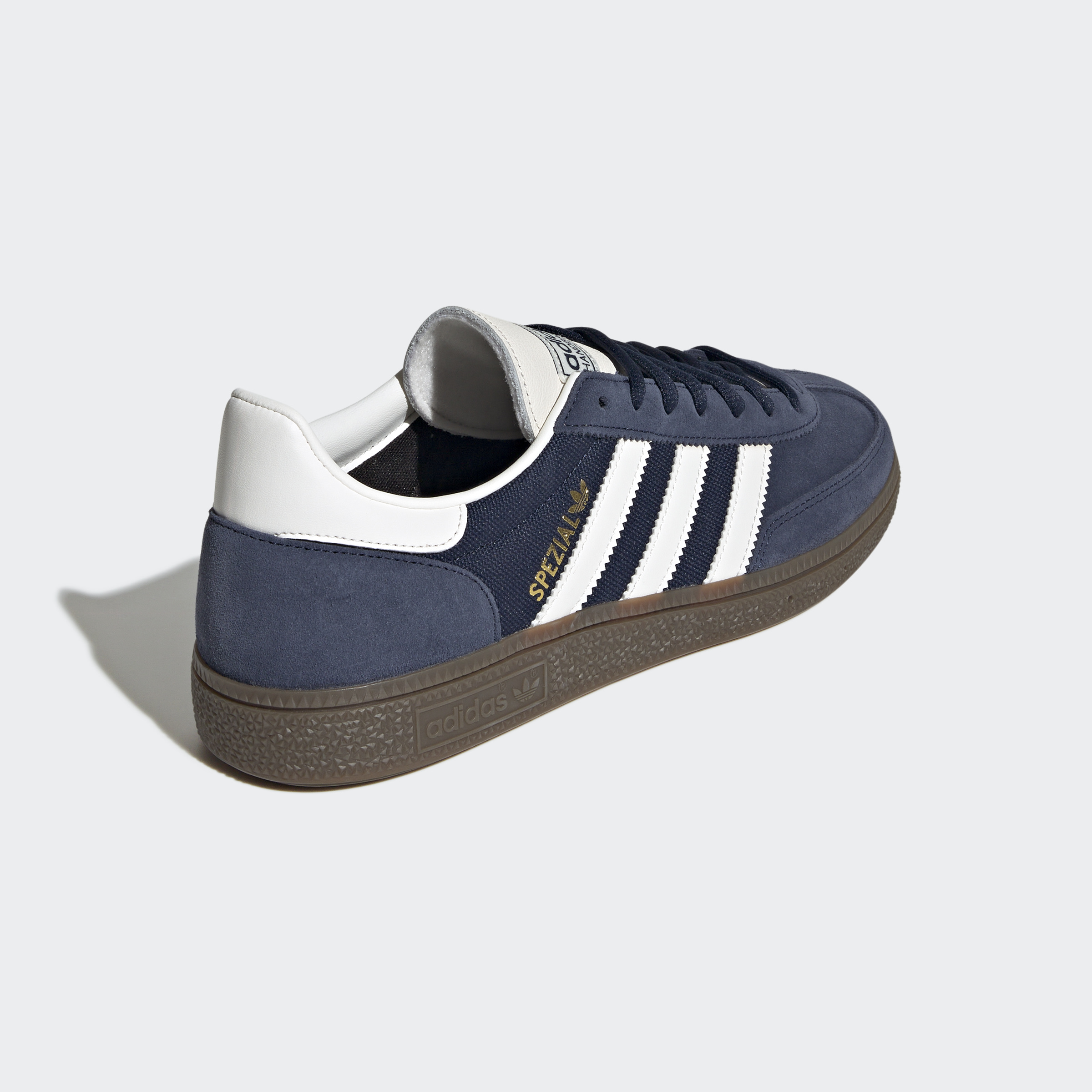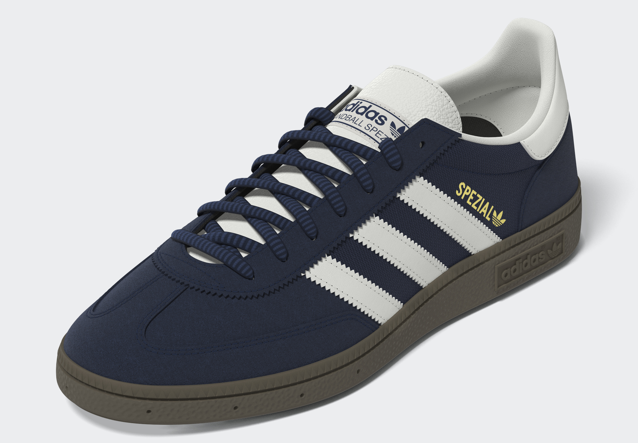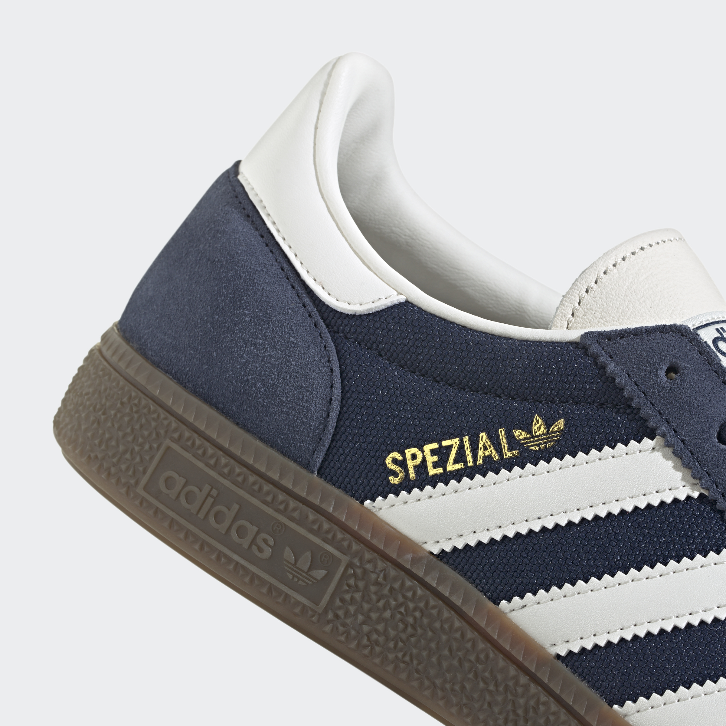 Originally designed for fast-paced indoor sports, these adidas Handball Spezial Shoes playing days are done but keep your style game strong. Crafted for comfort, their leather and textile upper surrounds a synthetic lining. Underneath, a rubber outsole maintains grip on city streets and beyond. A timeless T-toe classic, the Spezial stands out with serrated 3-Stripes and gold-letter branding along the side. Bring the energy and attitude of sport to your everyday hustle with these iconic low-profile trainers.