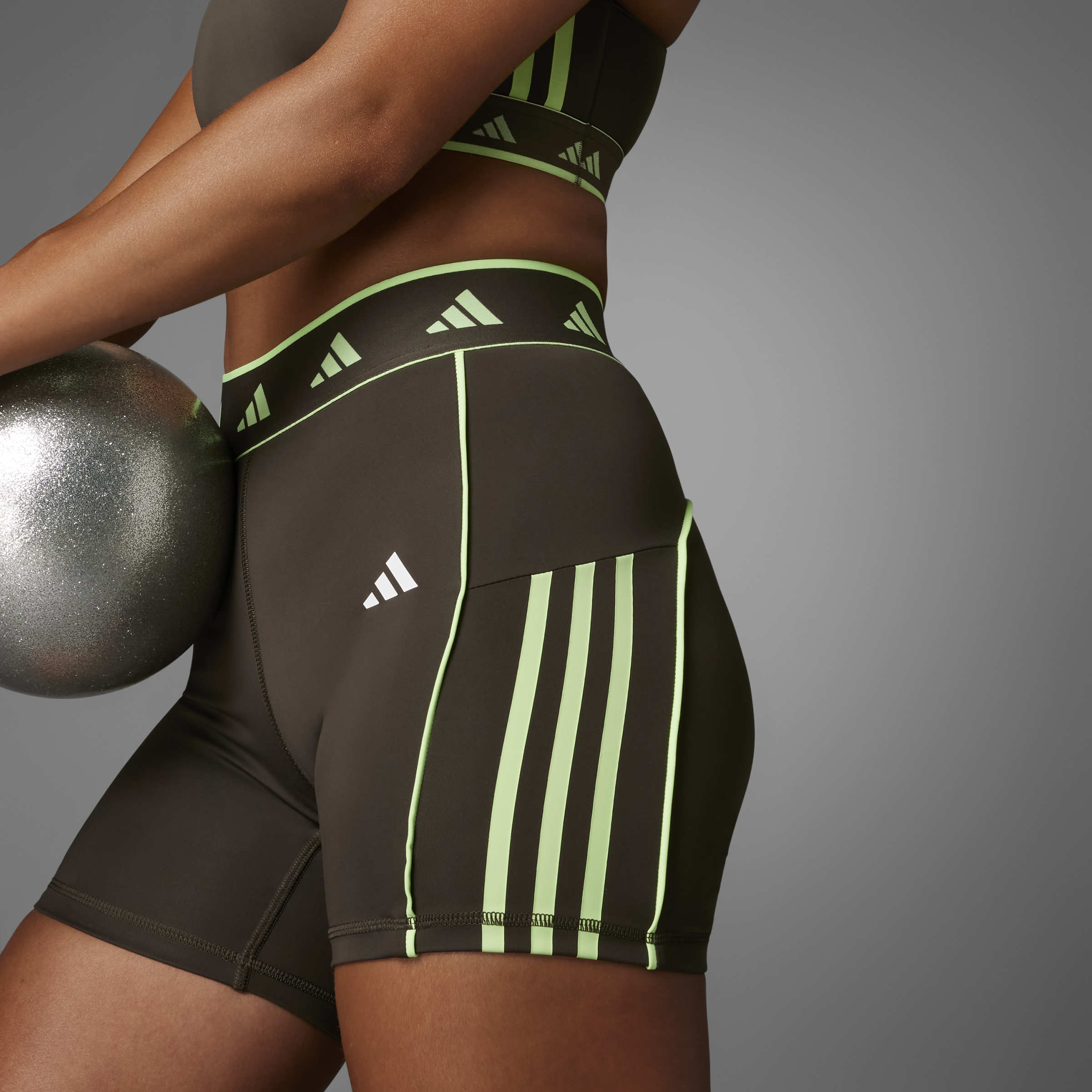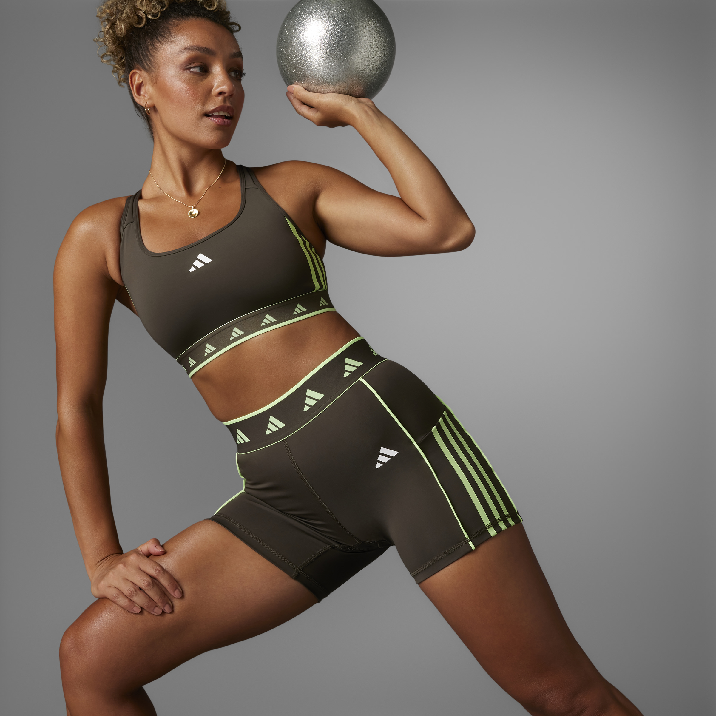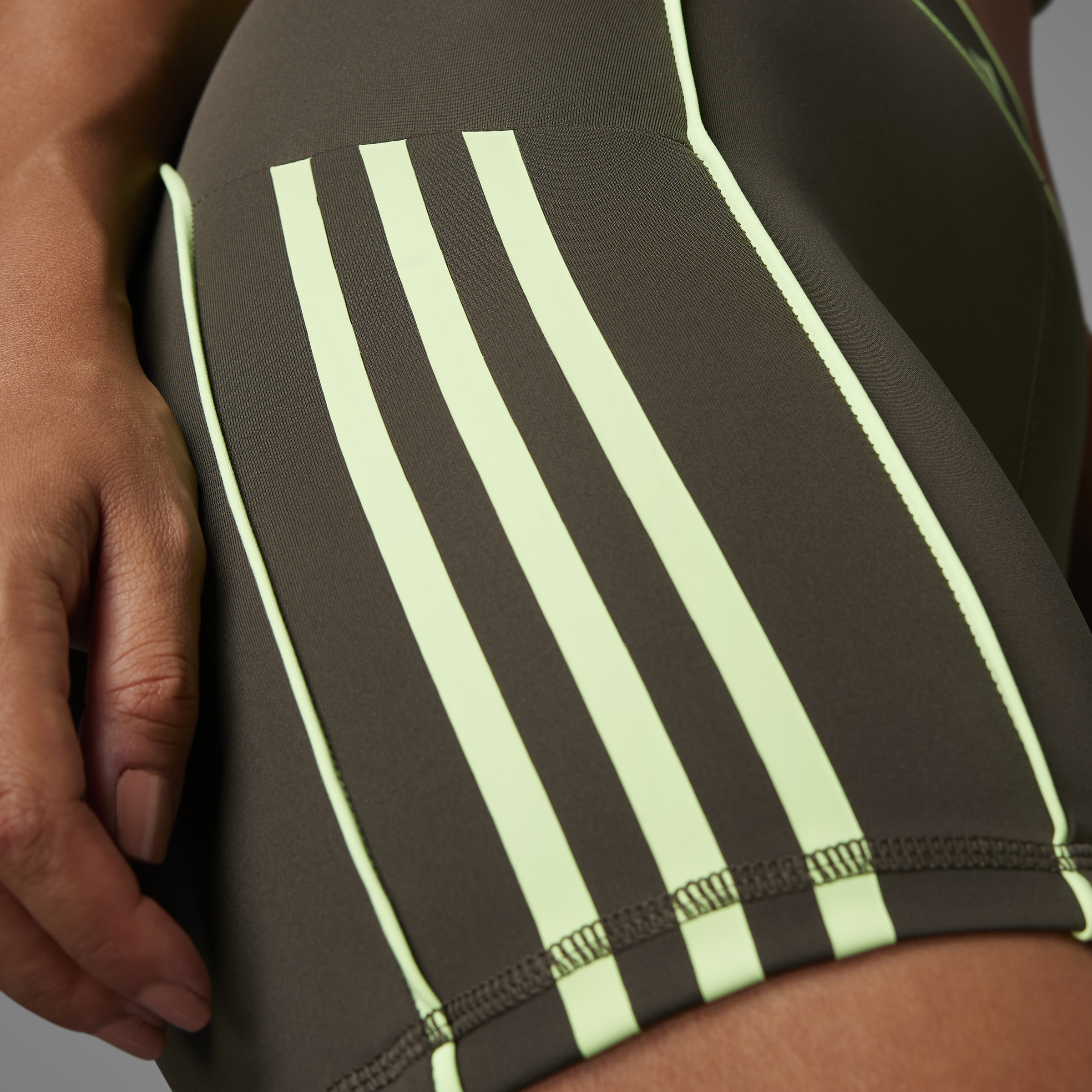 From samba class to circuit training, have fun while you get in shape in these adidas short leggings. They're made of stretchy knit fabric and fit like a second skin. A high-rise waist with a jacquard elastic waistband stays in place as you move. Colour pop piping and 3-Stripes down the legs add bright colour. This product is made with at least 70% recycled materials. By reusing materials that have already been created, we help to reduce waste and our reliance on finite resources and reduce the footprint of the products we make.