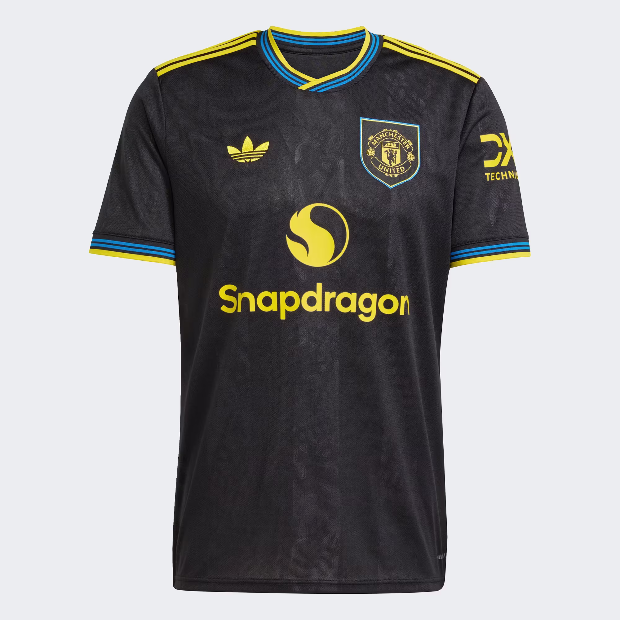 Part of a clean, classic adidas kit that will transport fans to a golden era. Finished in black, this Manchester United third jersey conjures some of the club's most iconic players and memorable away performances. A yellow Trefoil and club badge stand out on the chest while more subtle, devilish details are woven into the fabric. Moisture-managing AEROREADY keeps fans comfortable while their team create new memories.