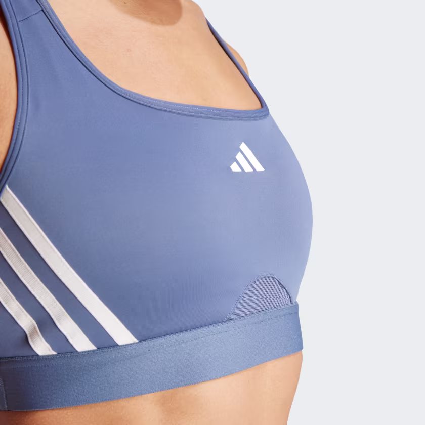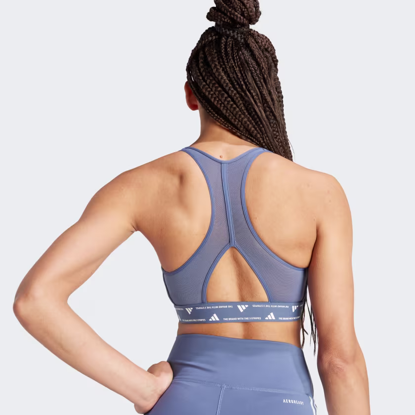 This medium-support sports bra from adidas is designed to keep up with your high-energy workout. Breathable fabric and strategic mesh panels keep you cool and comfortable, even during your toughest circuits. Grip dots on the removable pads minimise pad movement during your workout. If things heat up and you need to shed a layer, pull your shirt through the elastic band and keep going. This product is made with at least 70% recycled materials. By reusing materials that have already been created, we help to reduce waste and our reliance on finite resources and reduce the footprint of the products we make.