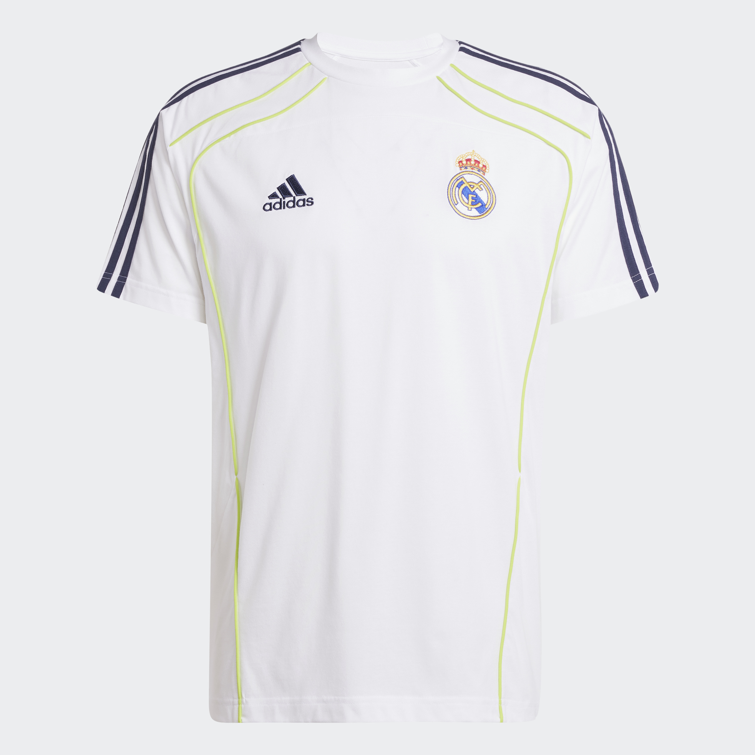 Show your passion for Real Madrid in this clean, classic tee from adidas. Created to give off match day vibes from the 2010s, it's built from soft single jersey fabric to offer breathable comfort every time you pull it on. Embroidered onto the chest, that famous club badge has been a symbol of excellence across every football era. By choosing recycled, we are able to reuse materials that have already been created, which helps to reduce waste. Renewable materials choices will help us to remove our reliance on finite resources. Our products made with a blend of recycled and renewable materials feature at least 70% total of these materials.