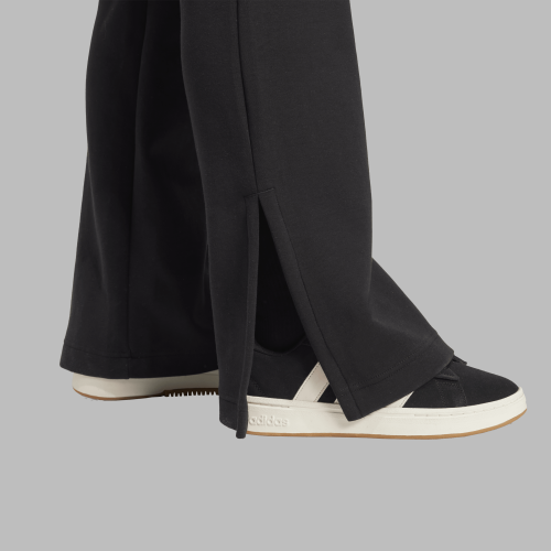 These flared adidas pants are your go-to for laid-back luxury. The soft, peached fabric keeps you comfortable as you move from place to place, while the slim fit, mid-rise waist and flared hems create a flattering silhouette. Inner elastic provides the perfect fit and side slits add a stylish touch.