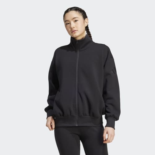 This adidas full-zip top is made from soft peached fabric for a cosy feel. The loose shape and extended length make it the perfect layering piece for a leisurely, laid-back look. A stand-up collar and front zipper let you adjust the coverage as you go about your day.