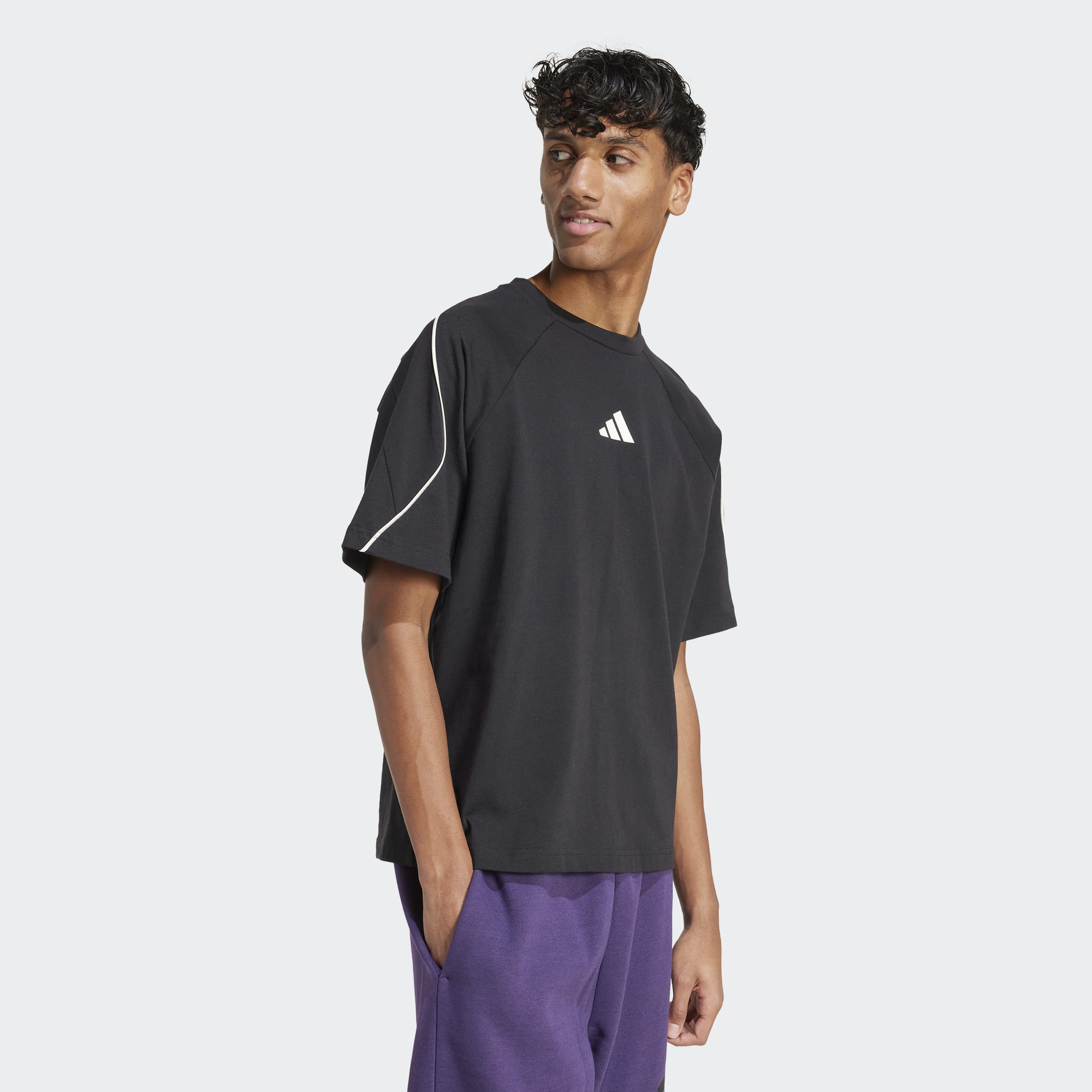 Feel the energy of the crowd in this adidas t-shirt. It's made from soft cotton, so you're always comfortable whether you're cheering on your team or just hanging out with friends. The satin piping and 3-Bar Logo add sporty details.