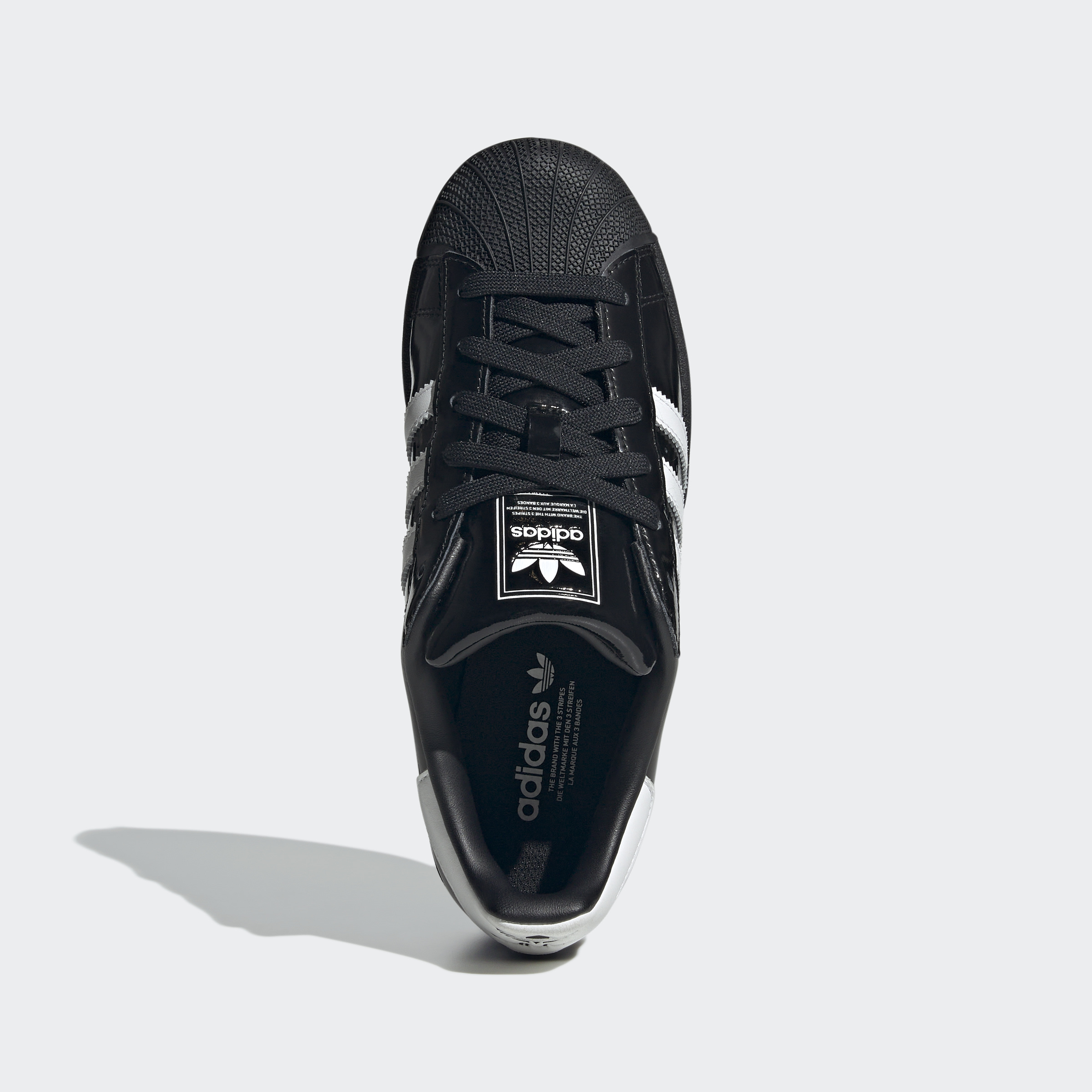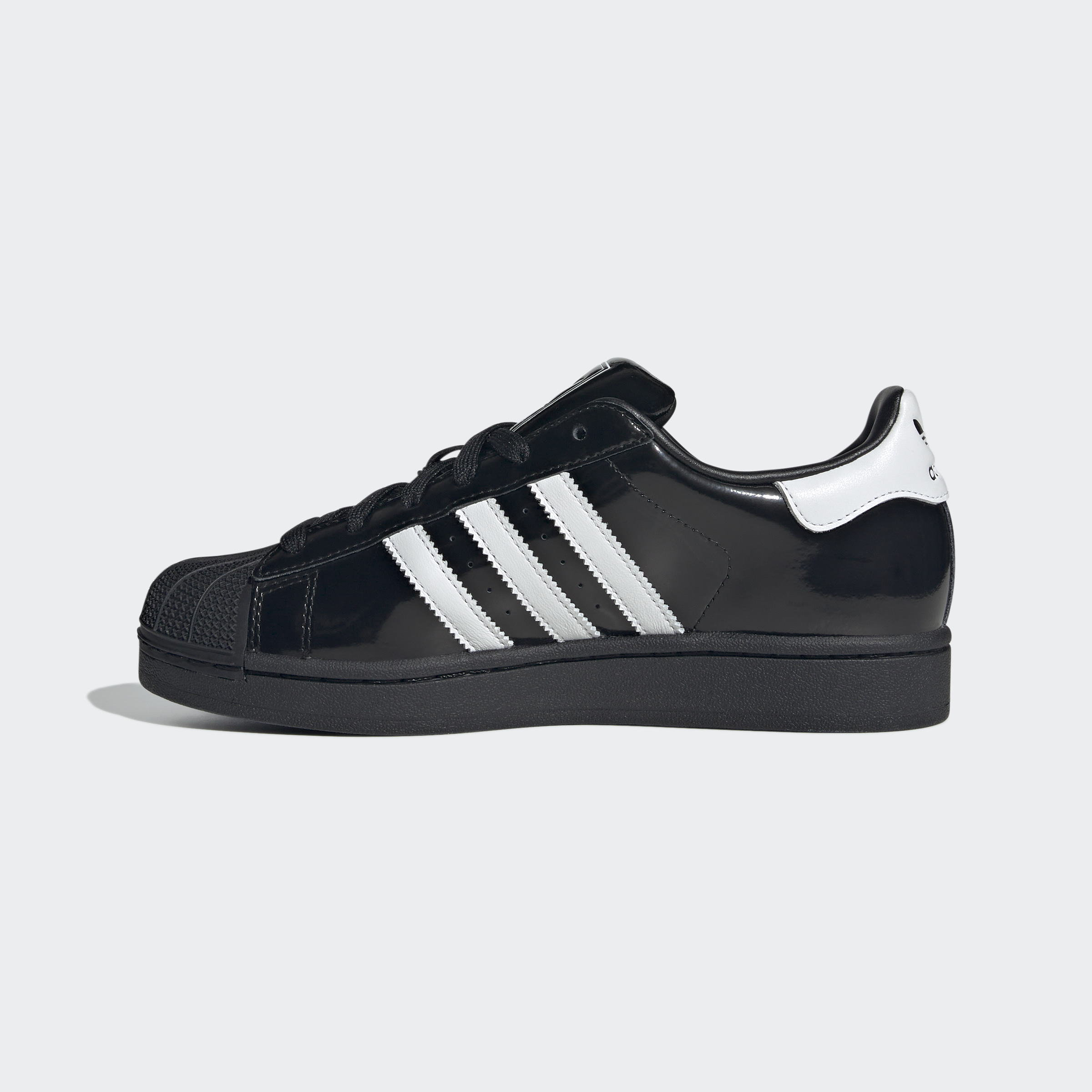 They've been on the scene for over 50 years and show no signs of slowing down. The adidas Superstar shoes bring iconic style to your everyday. A premium patent leather upper rides on a rubber outsole, providing all-day comfort. The signature shell toe completes the look.