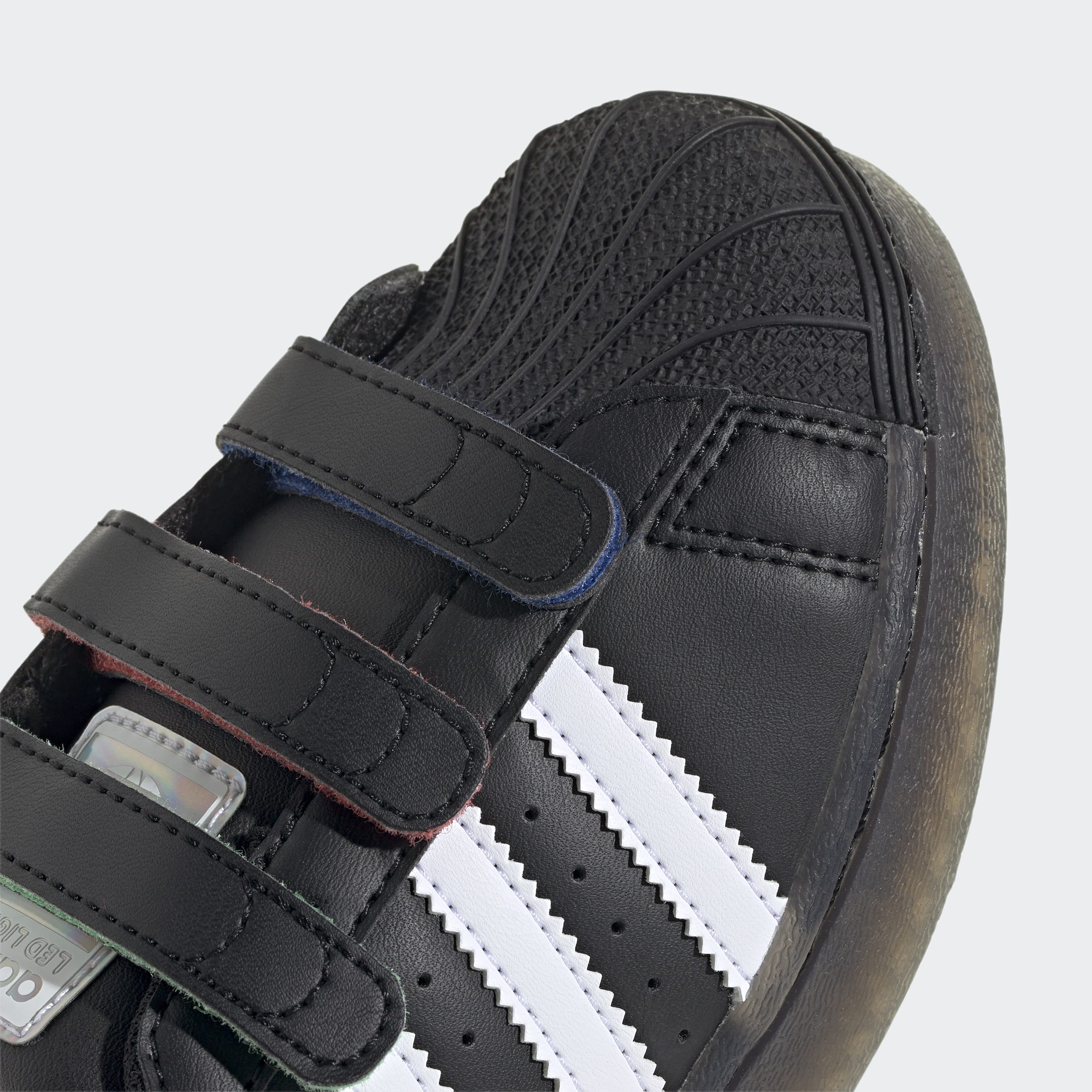 With every step you take, you'll light up the day in these adidas Superstar shoes. While classic details like the shell toe and rubber cupsole stay true to the retro basketball shoes that inspired them, pops of vivid colour add energy to any outfit and outing. The best part? Hook-and-loop straps make these shoes a breeze to get on and off, so you can be out the door and styling through your day in seconds.