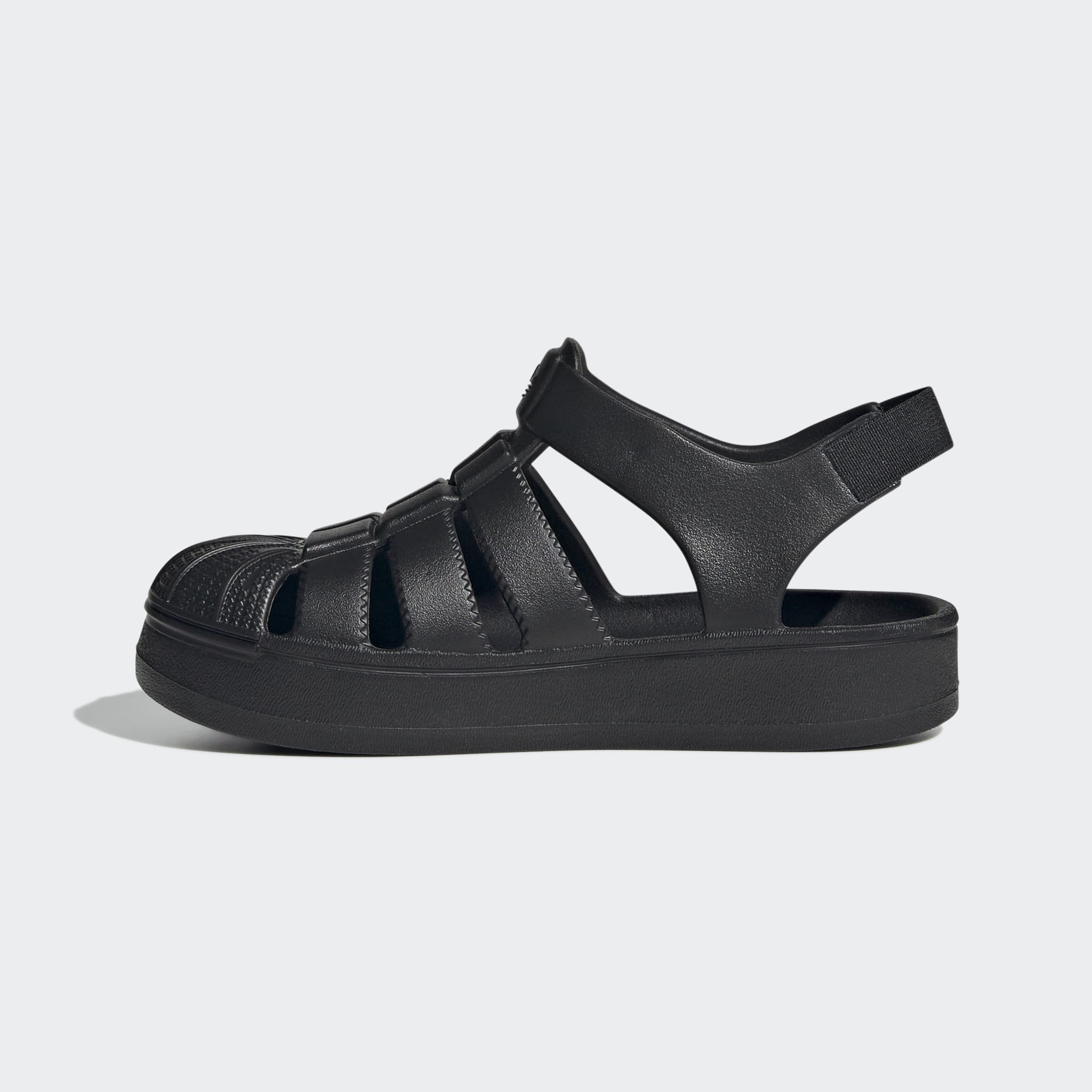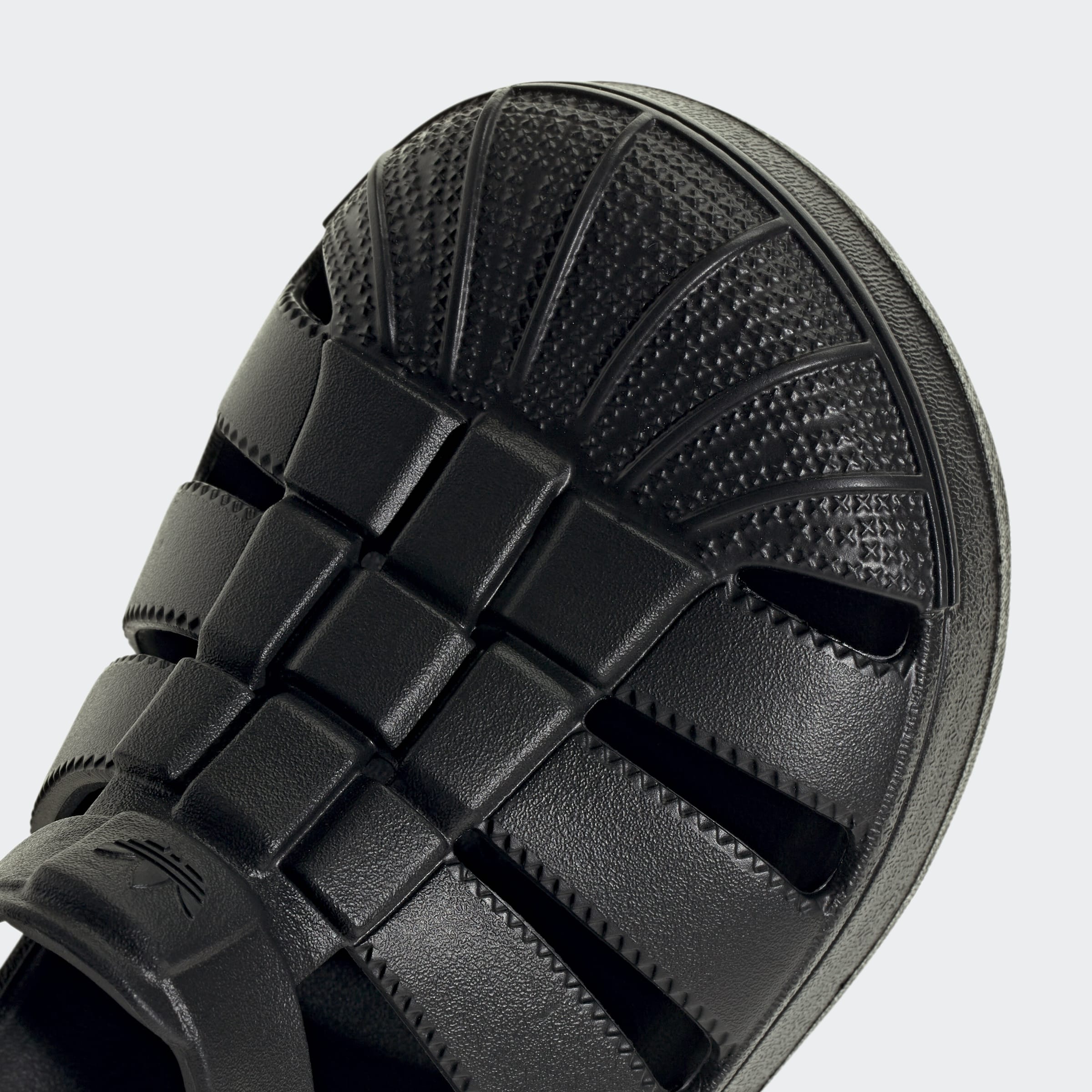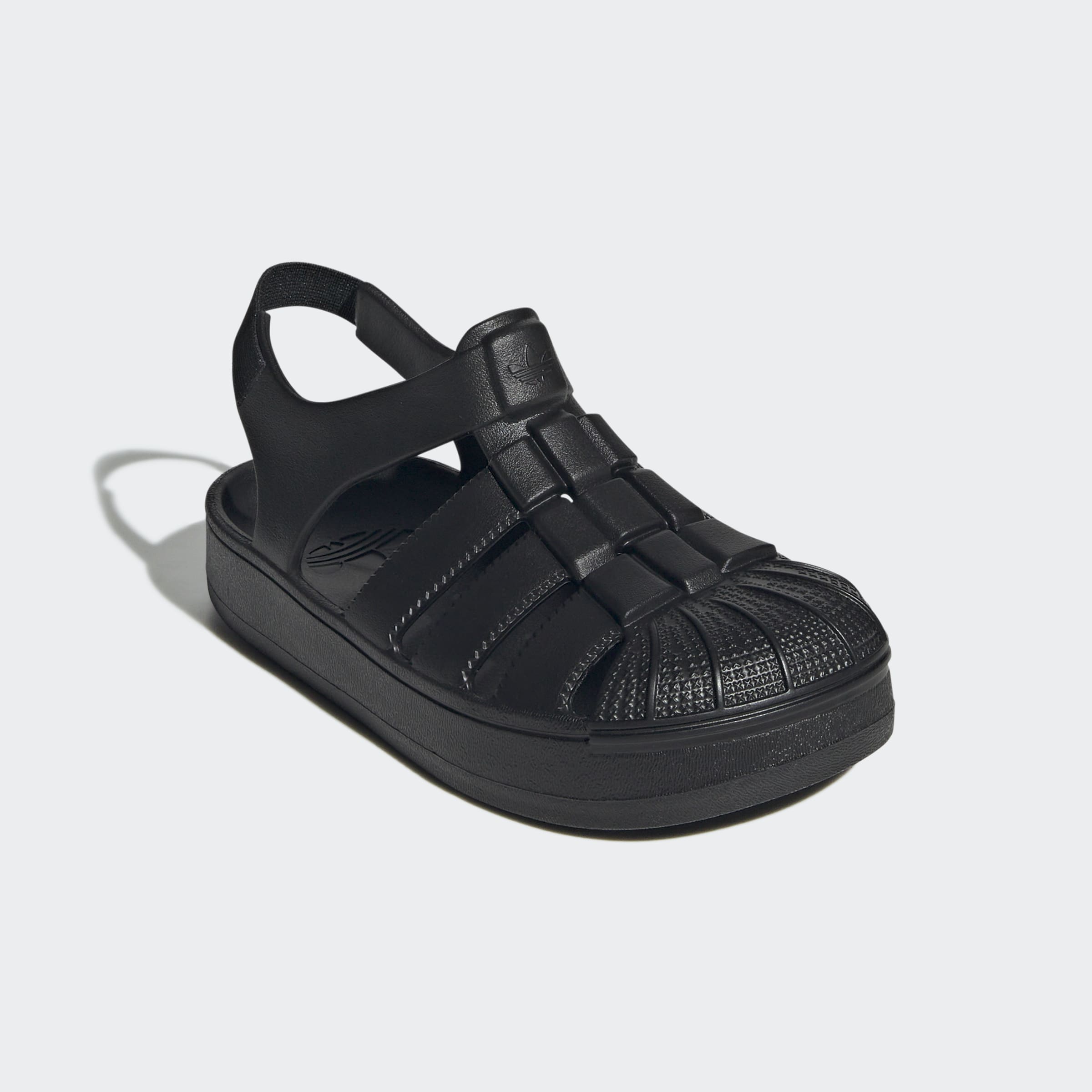 A sandal version of the adidas Superstar shoe, just for kids.