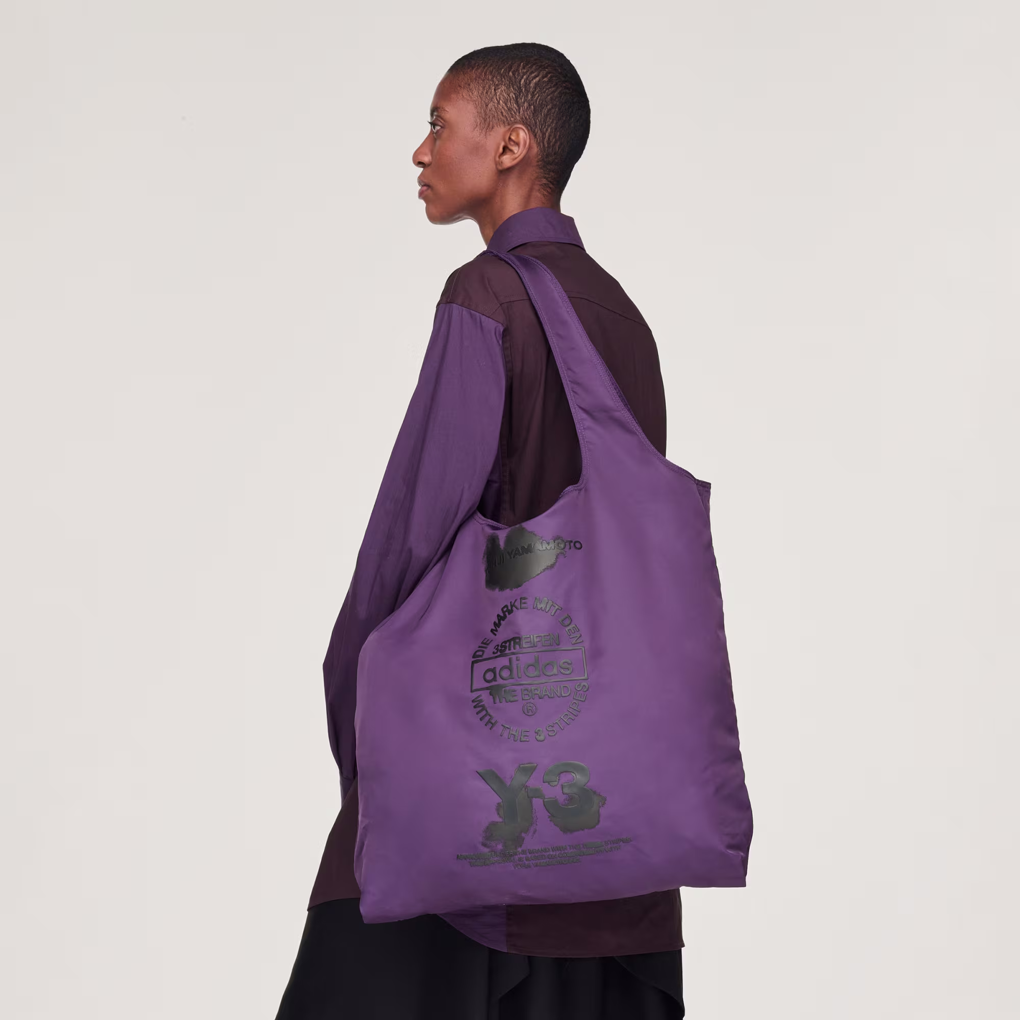Effortlessly elevated, the Y-3 Tote features a new seasonal stack graphic execution inspired by traditional Japanese ink technique. Functional details include a press-button main closure and an internal hanging pocket with a zipper and a D-ring.